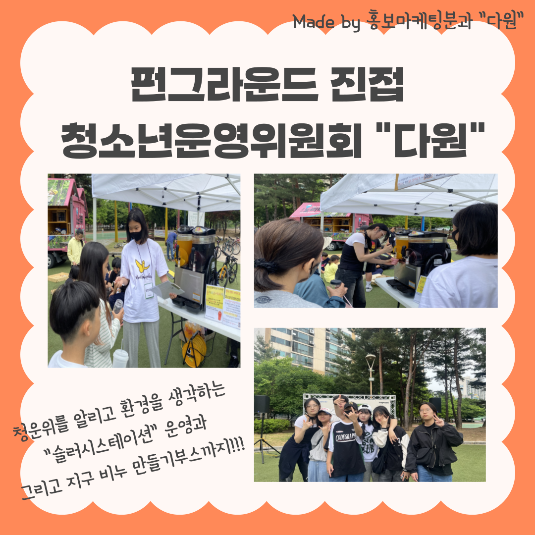 진접 [펀그라운드 진접] 청소년운영위원회 "다원" 작성자 펀그라운드진접 등록일자 2024년 5월 25일 17시 26분 6초 조회 242 5월 25일 토요일, 오남근린공원에서 청소년운영위원회 기획활동 및 홍보활동을 진행했습니다!!청운위를 알리고 환경을 생각하는 "슬러시스테이션" 운영과 지구 비누 만들기 Zone 운영까지!!!!청소년운영위원회 "다원"의 도전은 계속됩니다!!!! 제목을-입력해주세요_-001 (2) (4).png [ Size : 935.5KB, Down : 94 ] 미리보기 다운로드 목록보기