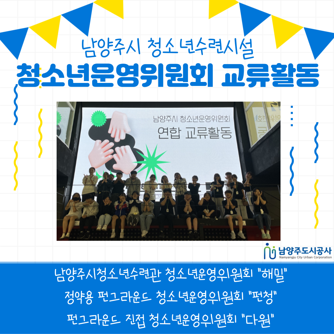진접 [펀그라운드 진접] 청소년운영위원회 교류활동 (남양주시 청소년운영위원회 연합) 작성자 펀그라운드진접 등록일자 2024년 6월 8일 20시 38분 2초 조회 244 6월 8일 토요일, 펀그라운드 진접 청소년운영위원회 "다원"이 남양주시 청소년시설 청소년운영위원회와 연합하여 교류활동을 진행했습니다!!남양주시청소년수련관 청소년운영위원회 "해밀"정약용 펀그라운드 청소년운영위원회 "다원"그리고 펀그라운드 진접 다원이 만났습니다아아청운위 특색사업과 노하우를 공유하며 우리들만의 네트워크를 구성하고, 역량 UP 가능한 전문교육 그리고 꿀잼 보장 레크레이션까지!!!모두가 만족하는 교류활동 마무리 - !다음에 또 만나요 제목을-입력해주세요_-001 (33).png [ Size : 661.67KB, Down : 83 ] 미리보기 다운로드 목록보기