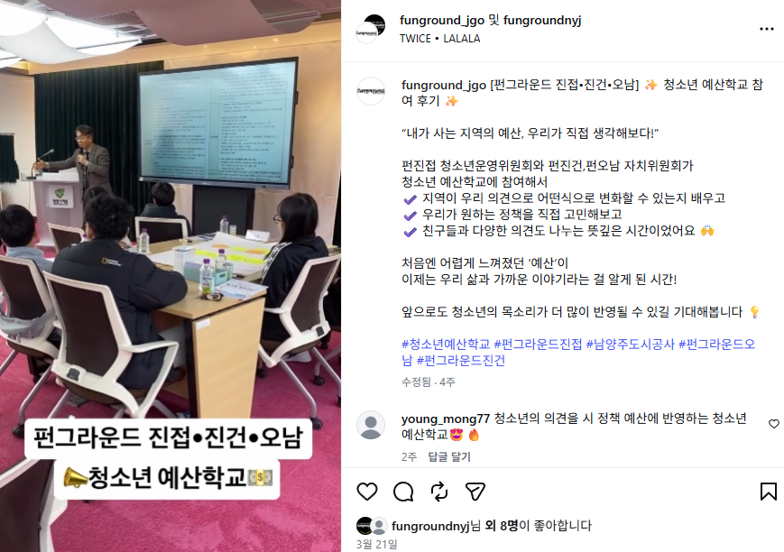 진접 펀그라운드 진접ㆍ진건ㆍ오남 청소년 예산 학교 작성자 펀그라운드진접 등록일자 2026년 4월 23일 18시 57분 48초 조회 2 KakaoTalk_20260423_184633023.png [ Size : 564.02KB, Down : 2 ] 미리보기 다운로드 목록보기