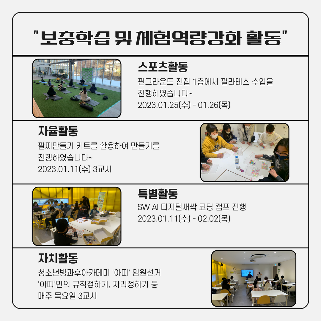청소년방과후아카데미 '아띠'에서는 1월 다양한 프로그램을 운영했습니다.