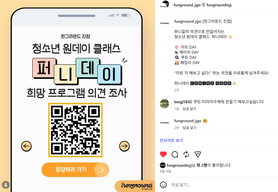 진접 퍼니데이 청소년 의견 조사 작성자 펀그라운드진접 등록일자 2026년 4월 23일 19시 3분 29초 조회 2 KakaoTalk_20260423_185034807.png [ Size : 232.05KB, Down : 1 ] 미리보기 다운로드 목록보기
