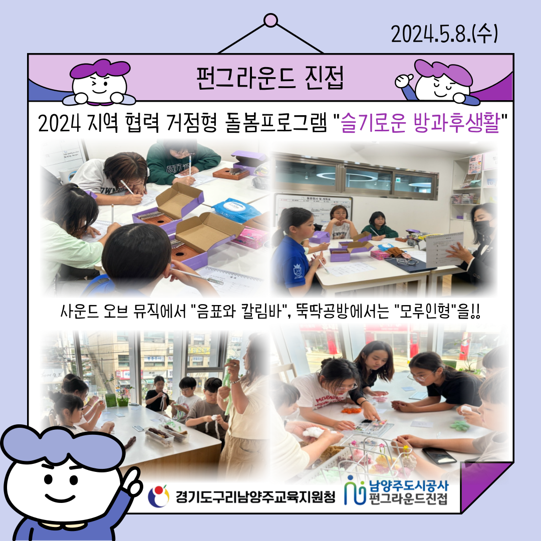 구리남양주교육지원청에서 지원하는 2024년 지역 협력 거점형 돌봄프로그램 "슬기로운 방과후생활"이 펀그라운드 진접에서 운영됩니다