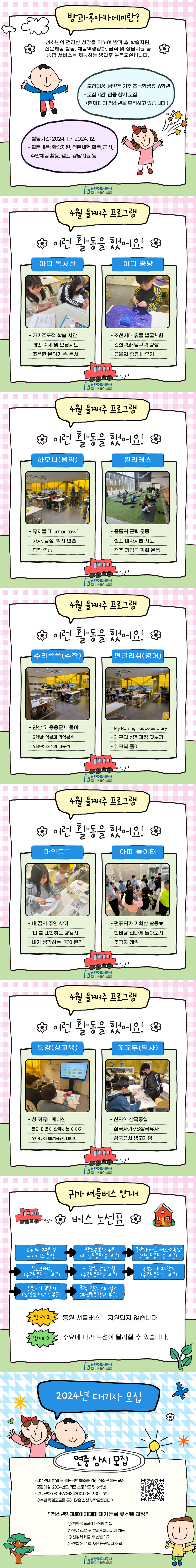 월요일부터 금요일까지 알찬 프로그램으로 가득한 펀그라운드 진접 방과후아카데미 아띠! 많은 관심 부탁드립니다:)
