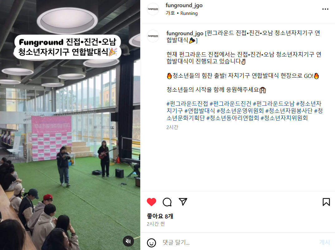 현재 펀그라운드 진접에서는 진접•진건•오남 청소년자치기구 연합발대식이 진행되고 있습니다