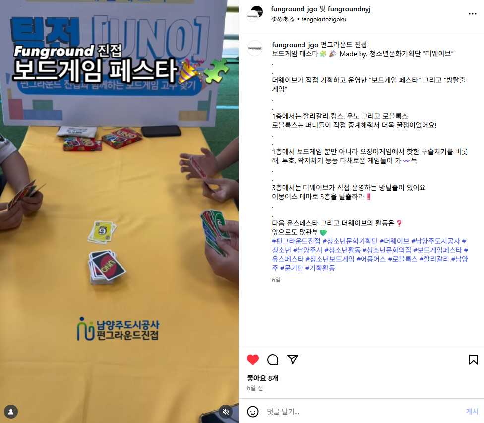 진접 [진접] 보드게임 페스타 작성자 펀그라운드오남 등록일자 2025년 8월 1일 16시 0분 56초 조회 128 활동 내용https://www.instagram.com/reel/DMj0POLR6tw/ 스크린샷 2025-08-01 160111.png [ Size : 483.98KB, Down : 60 ] 미리보기 다운로드 목록보기