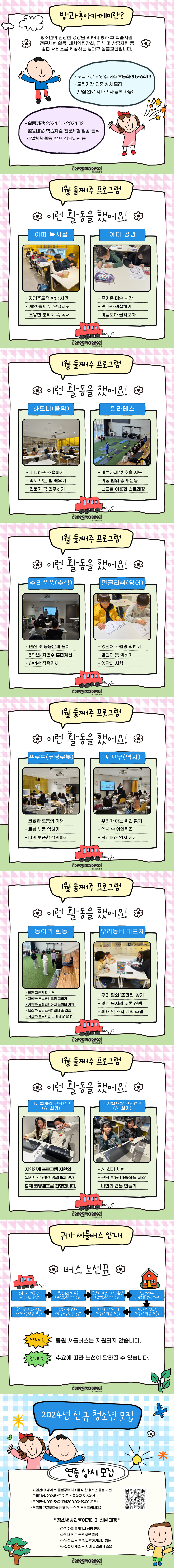 진접 [청소년방과후아카데미] 1월 둘째, 셋째주 뉴스레터 작성자 펀그라운드진접 등록일자 2024년 1월 19일 14시 10분 58초 조회 250 1월2주 (1).jpg [ Size : 406.34KB, Down : 84 ] 미리보기 다운로드 1월2주(통합).jpg [ Size : 2.62MB, Down : 90 ] 미리보기 다운로드 목록보기