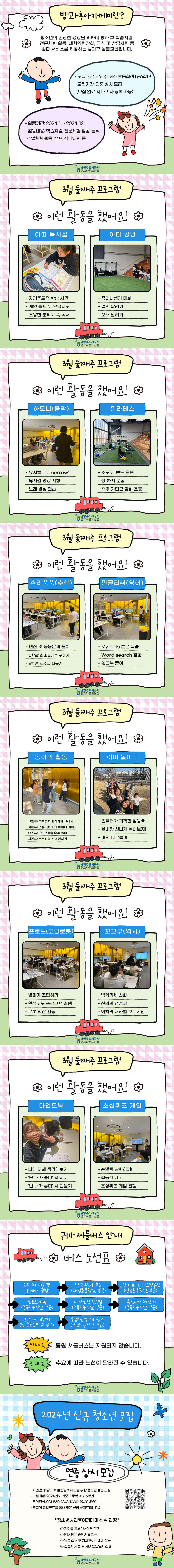 월요일부터 금요일까지 알찬 프로그램으로 가득한 펀그라운드 진접 방과후아카데미 아띠! 많은 관심 부탁드립니다:)