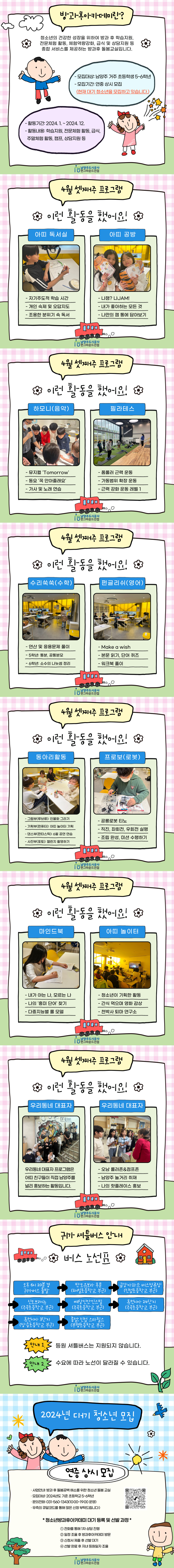 월요일부터 금요일까지 알찬 프로그램으로 가득한 펀그라운드 진접 방과후아카데미 아띠! 많은 관심 부탁드립니다:)