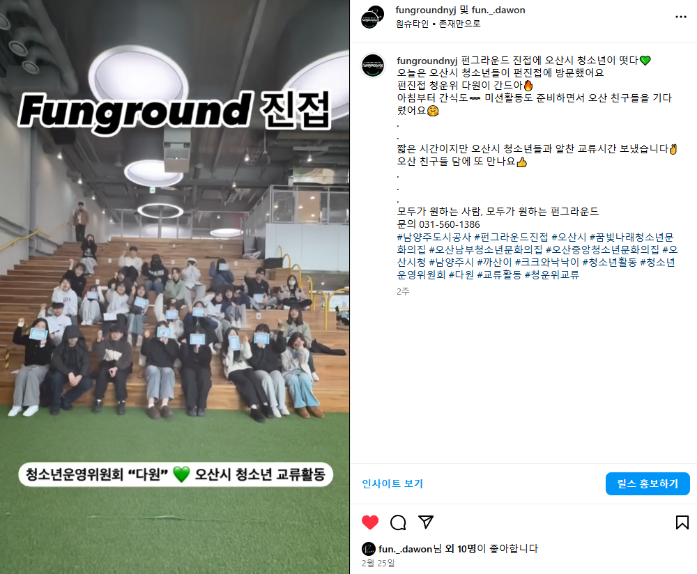 펀그라운드 진접에 오산시 청소년이 떳다!