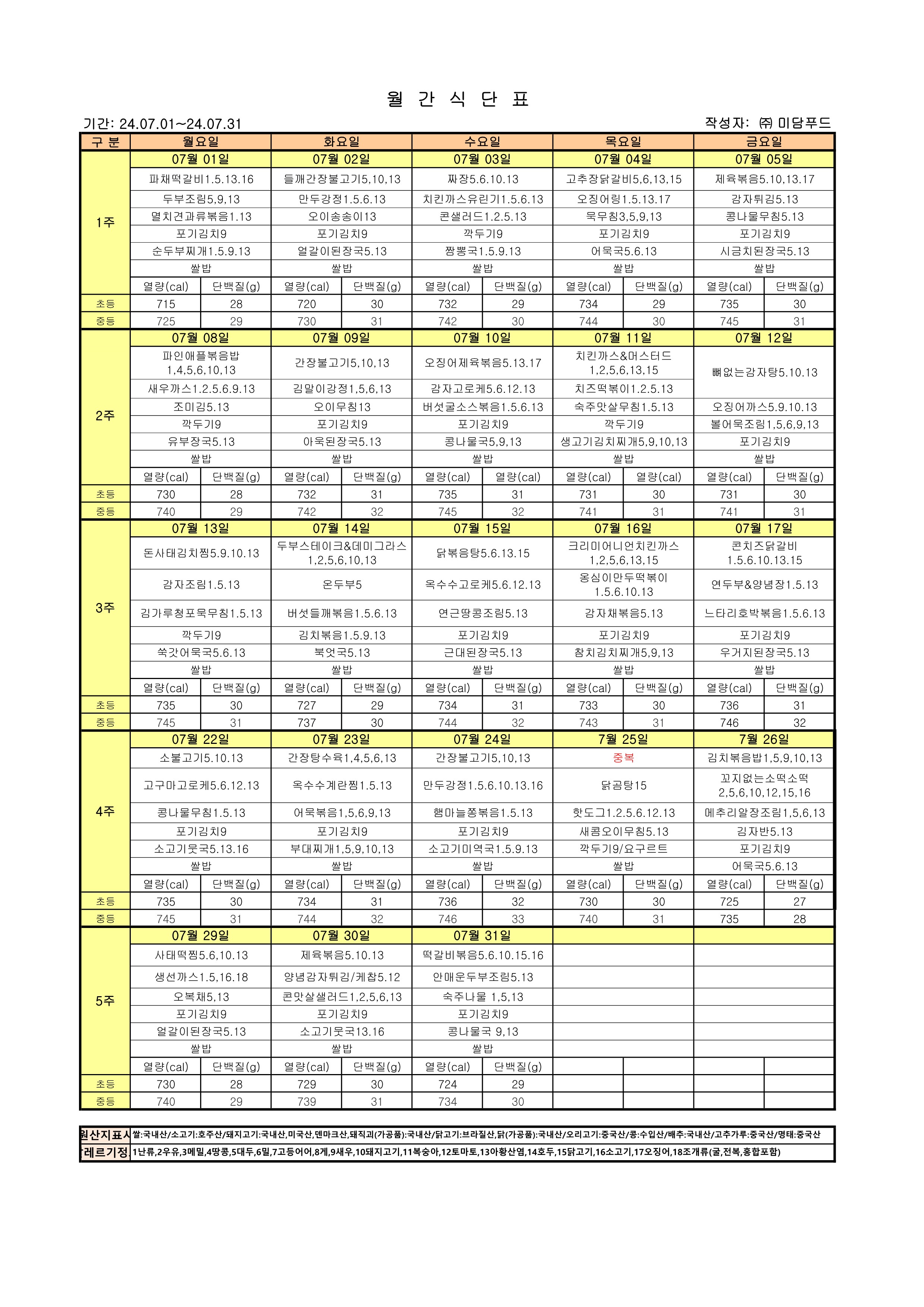 [공지사항] 2024년 7월 청소년방과후아카데미 저녁 식단표 작성자 펀그라운드진접 등록일자 2024년 6월 24일 11시 43분 53초 조회 190 청소년방과후아카데미는 매일(월~금) 저녁 식사가 제공됩니다!등록 희망 또는 문의사항이 있으시면 언제든지 연락주세요:)문의전화: 031-560-1343 7월 식단표_1.jpg [ Size : 1.28MB, Down : 86 ] 미리보기 다운로드 목록보기