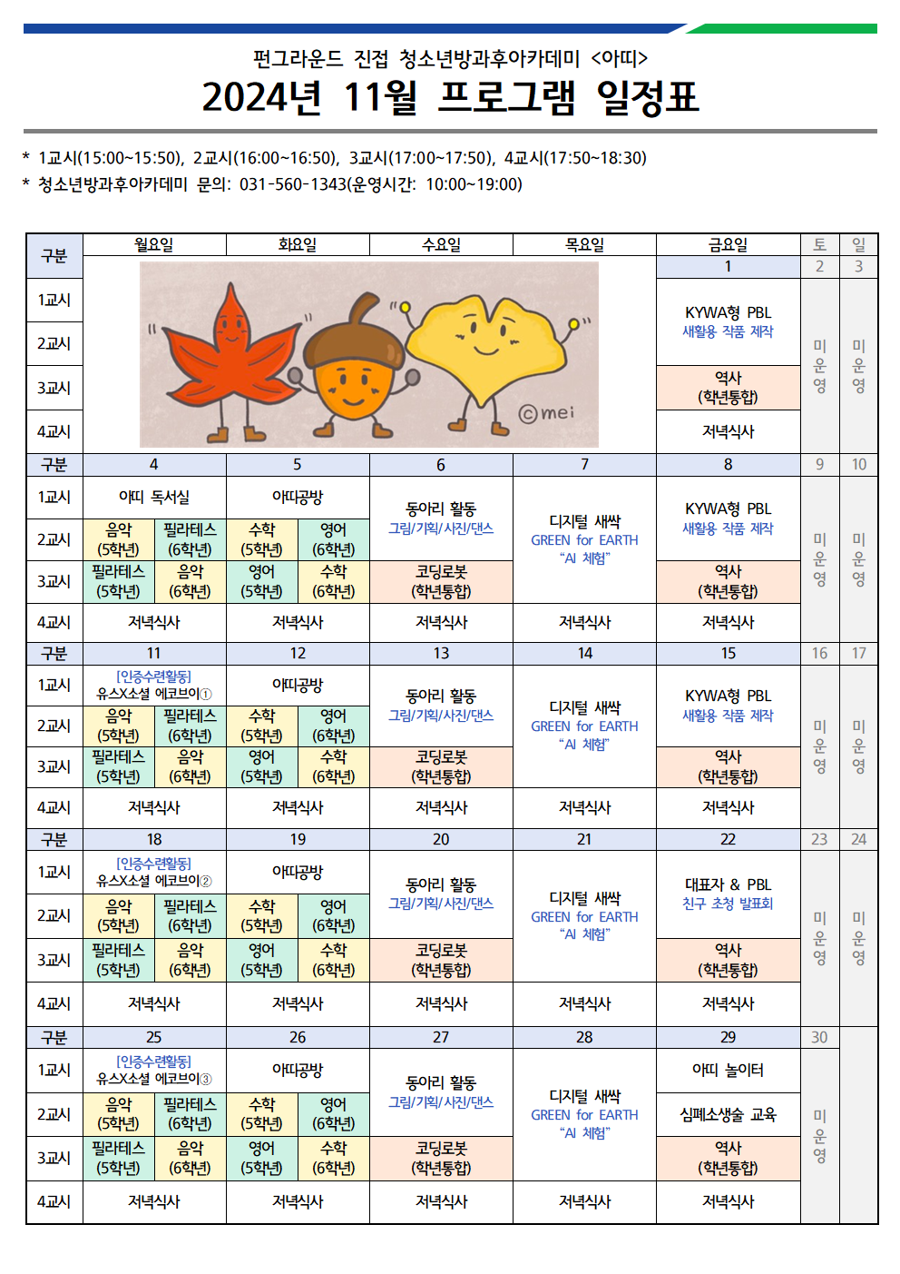 [공지사항] 2024년 11월 청소년방과후아카데미 프로그램 일정