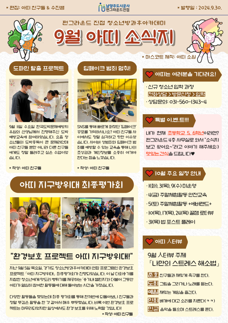 [아띠소식] 청소년방과후아카데미 9월 소식지