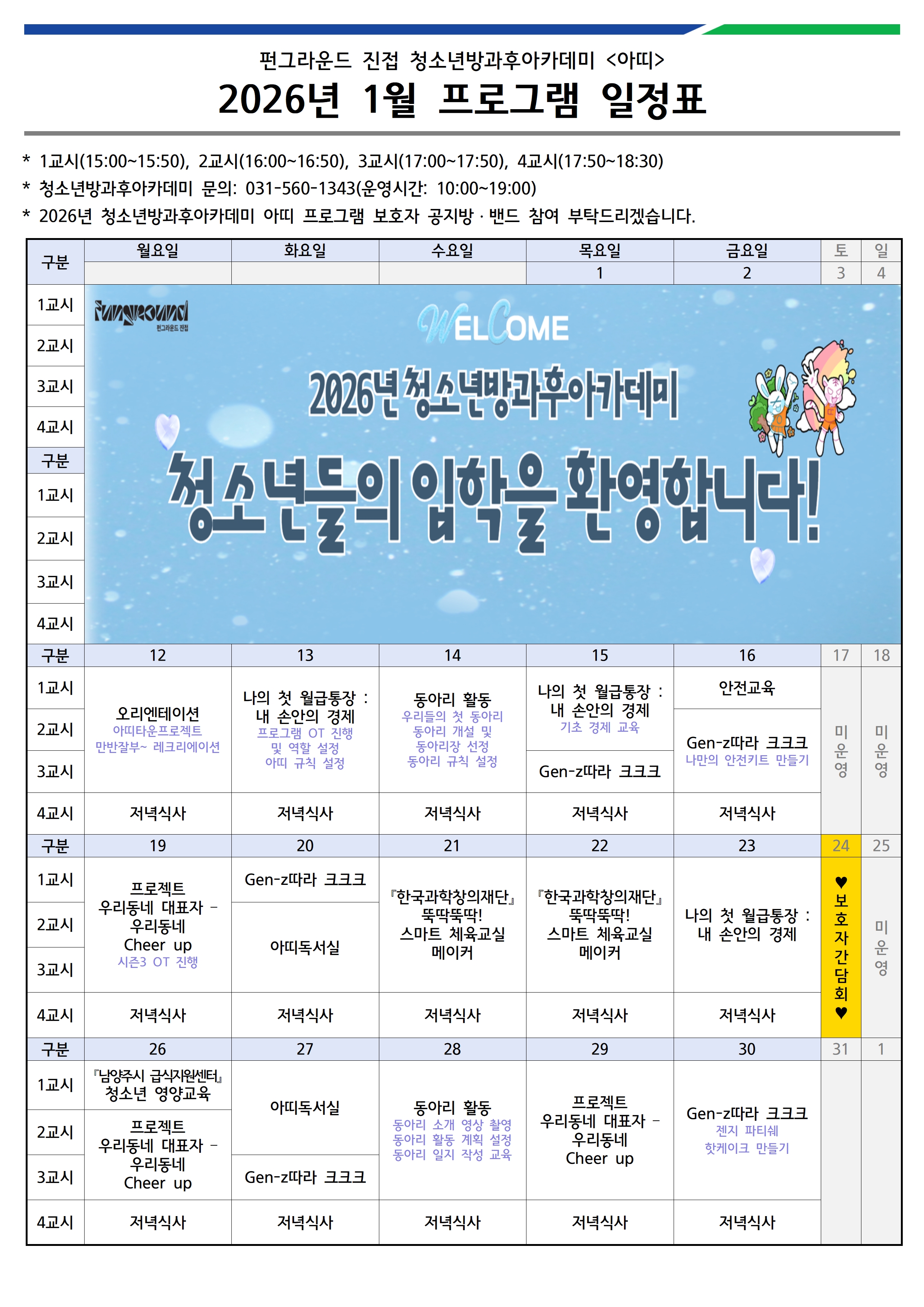 [공지사항] 2026년 1월 청소년방과후아카데미 프로그램 일정