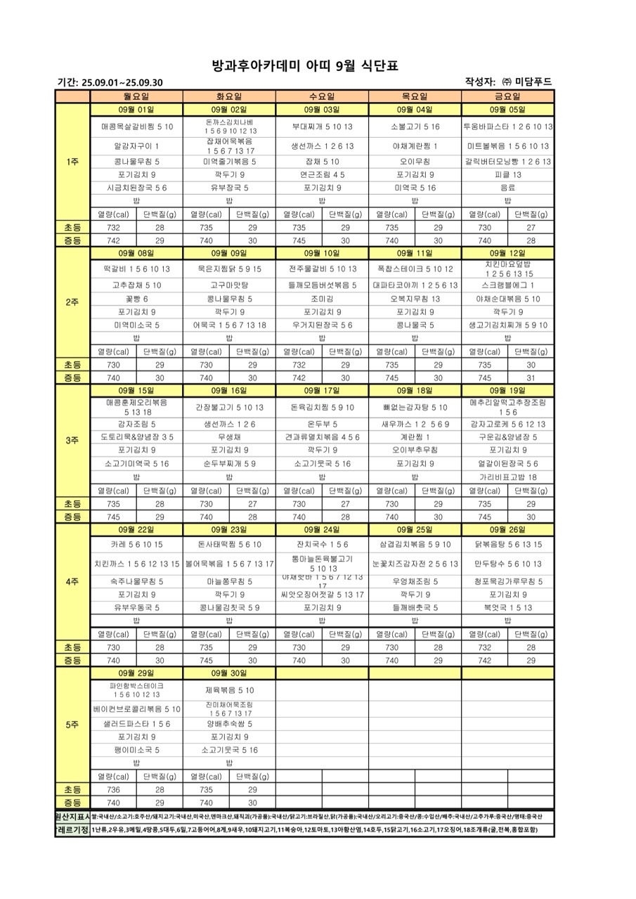 [공지사항] 2025년 9월 청소년방과후아카데미 저녁 식단표 작성자 펀그라운드진접 등록일자 2025년 10월 22일 14시 39분 22초 조회 32 청소년방과후아카데미 아띠에서는 매일 건강하고 영양가득한 석식을 제공하고 있습니다~!!등록 희망과 문의가 있으시다면 언제든지 연락주세요(>'-'<)문의전화: 031-560-1343 8_h27Ud018svc2h3abvqwdrxu_rh786y.jpg [ Size : 285.52KB, Down : 21 ] 미리보기 다운로드 목록보기