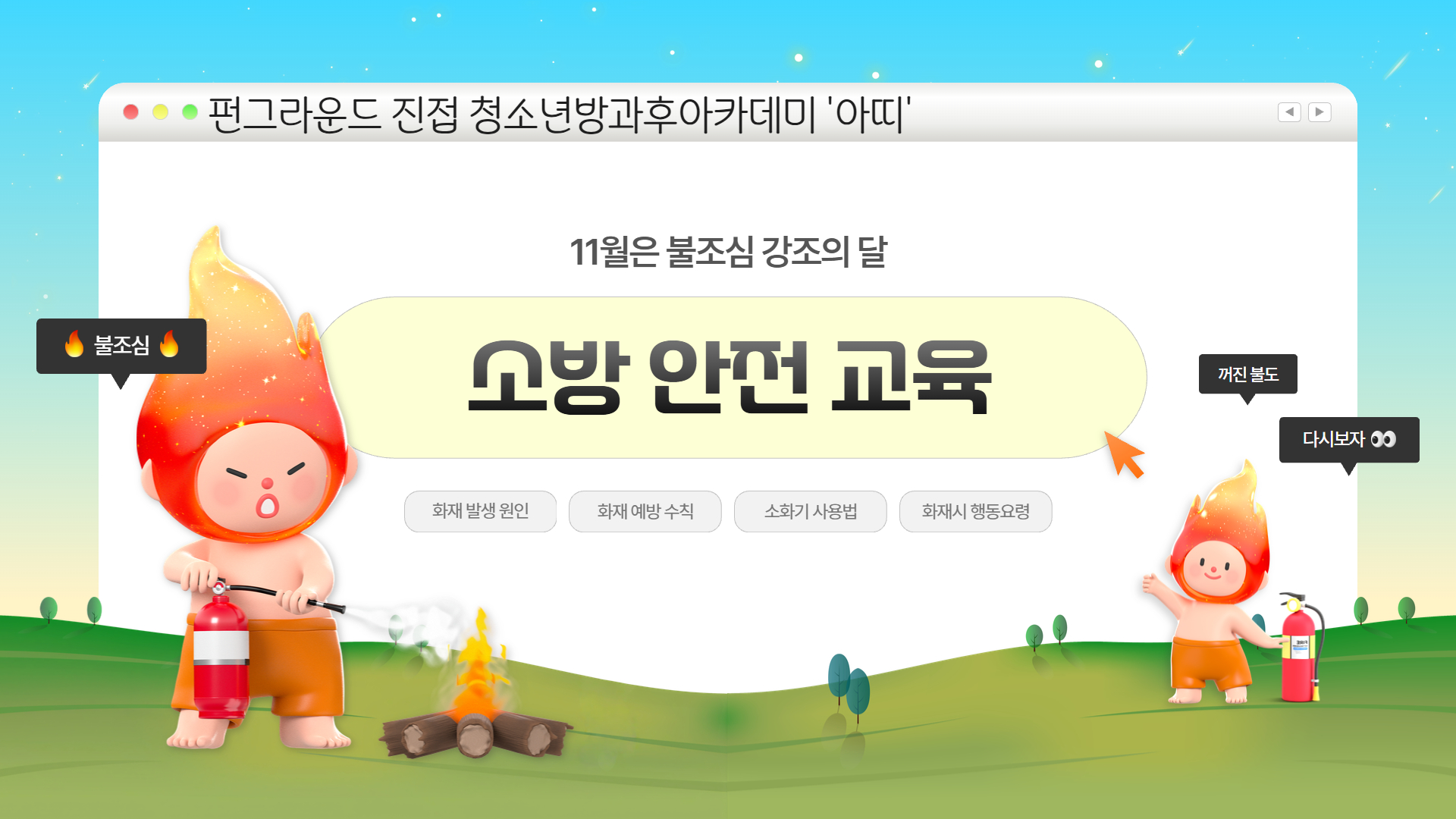 [펀그라운드 진접] 청소년방과후아카데미 아띠 『남양주소방서 연계 소화기 사용법, 화재 대피 요령 교육』
