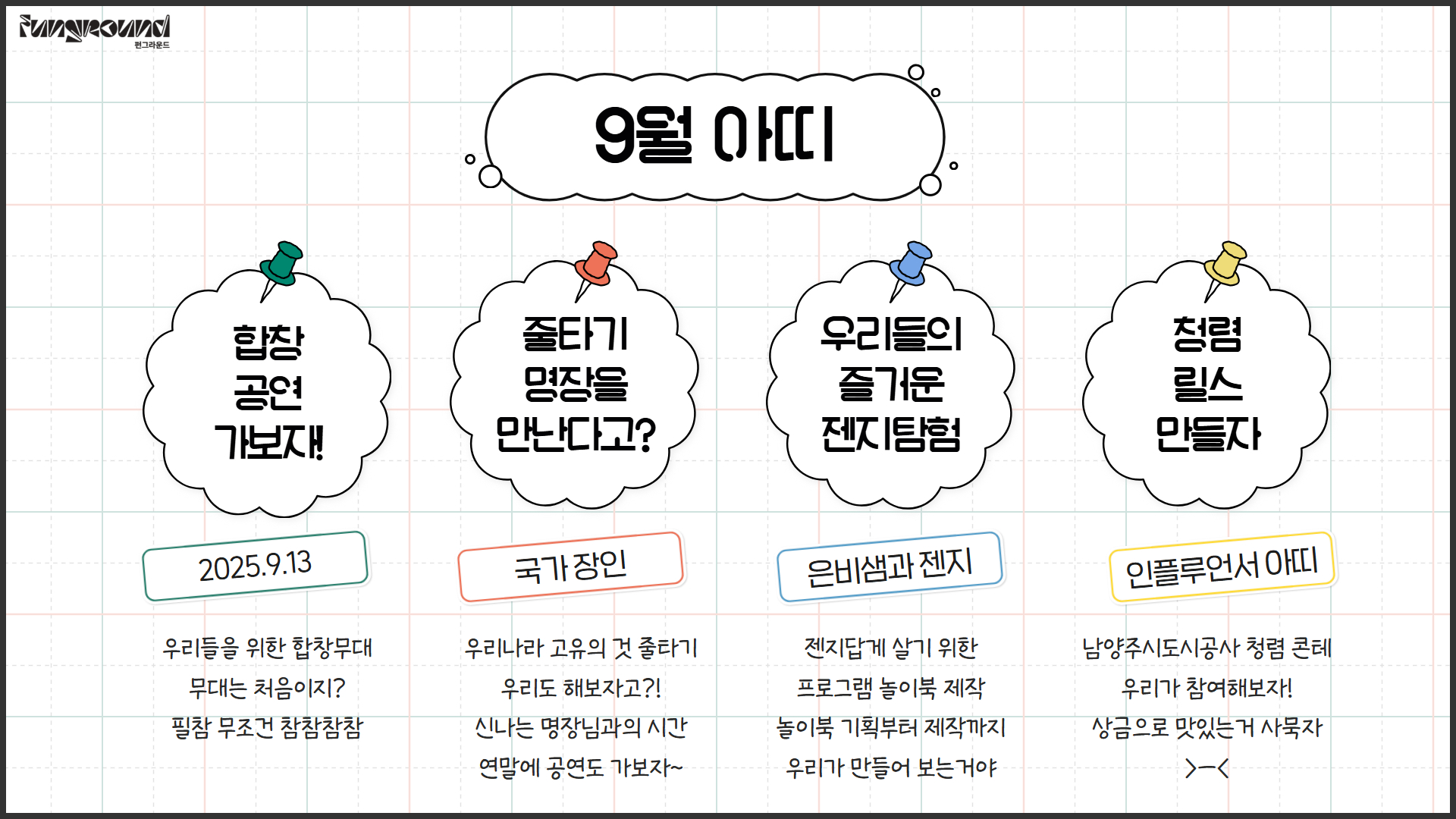 [펀그라운드 진접] 청소년방과후아카데미 아띠 『9월 자치회의』 작성자 펀그라운드진접 등록일자 2025년 10월 24일 11시 7분 54초 조회 45 9월 아띠 자치회의---○ 9월 활동 안내 ○ 아띠 생활을 더 행복하게 할 생활 안내 아띠 생활교육, 9월 자치회의.jpg [ Size : 847.43KB, Down : 21 ] 미리보기 다운로드 아띠 생활교육, 9월 자치회의2.jpg [ Size : 768.42KB, Down : 20 ] 미리보기 다운로드 목록보기