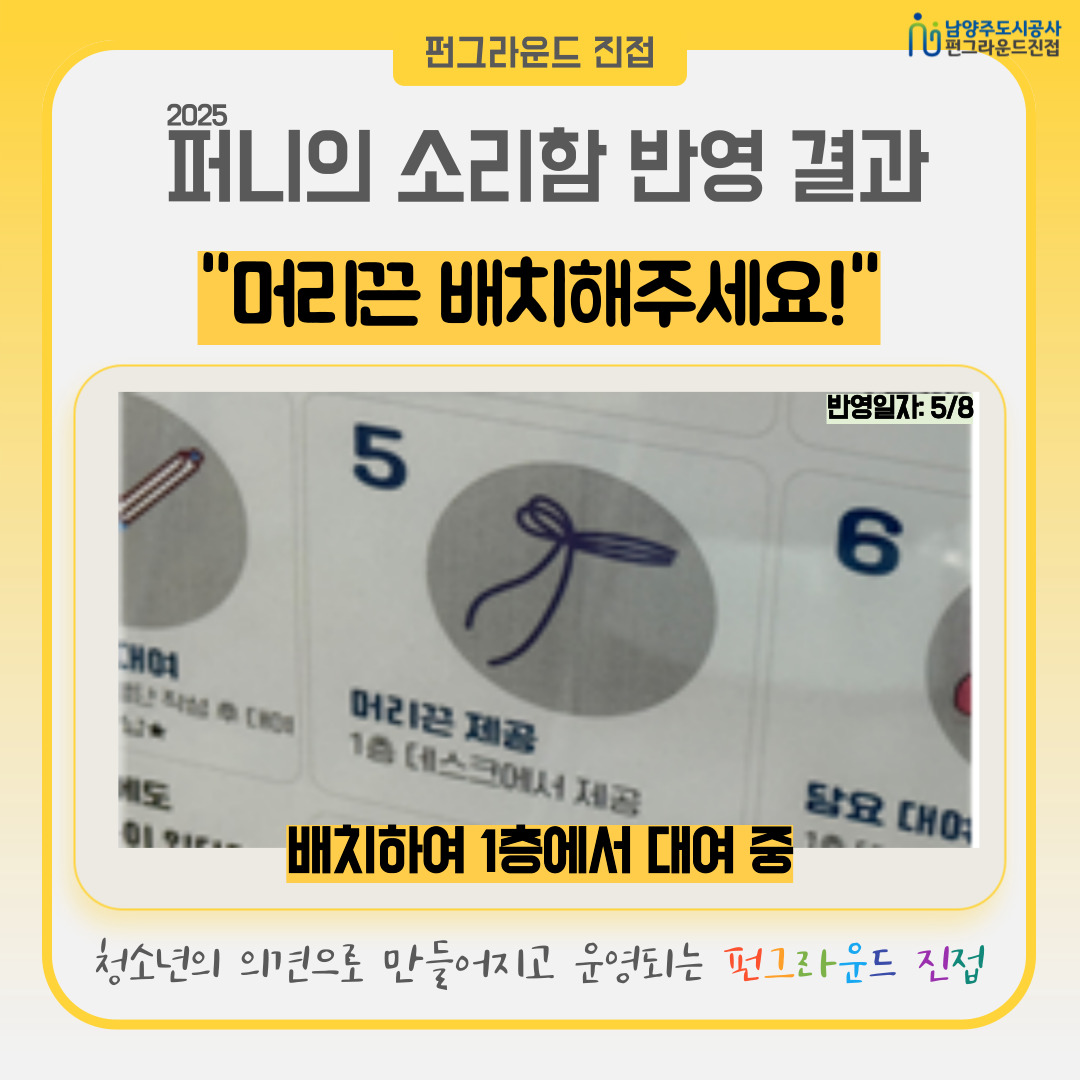 펀그라운드 진접을 이용하는 청소년들이 다양한 의견을 제시하고 공유할 수 있는 게시판입니다 (반영일: 2025.5.8.) 배치하여 1층에서 대여 중 작성자 펀그라운드진접 등록일자 2025년 7월 5일 18시 38분 34초 조회 71 037.jpg [ Size : 205.32KB, Down : 37 ] 미리보기 다운로드 답변하기 목록보기