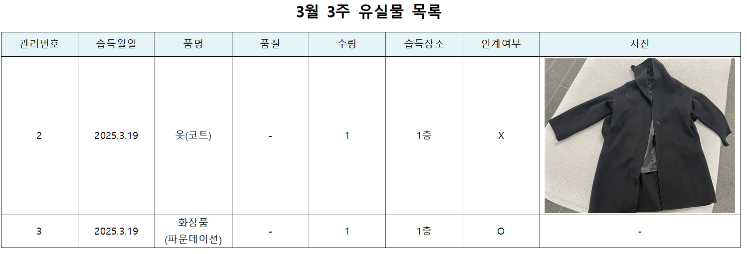 [펀그라운드 진접 3월 3주차 분실물 목록 알림 ]
