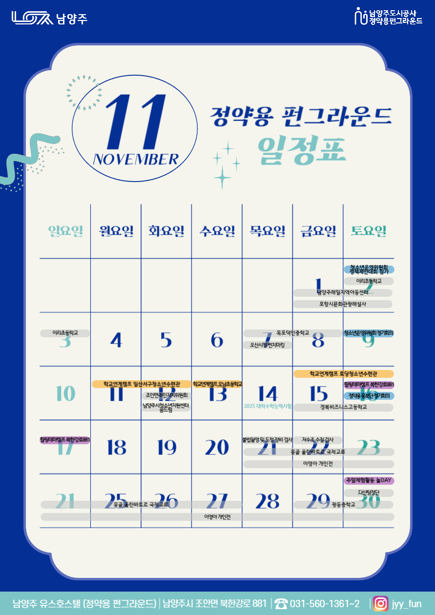 정약용 [공지] 2024년 11월 정약용 펀그라운드 청소년활동 프로그램 안내 작성자 펀그라운드정약용 등록일자 2024년 11월 1일 19시 59분 9초 조회 317 11웹포스터_월간 일정 안내-001.jpg [ Size : 469.14KB, Down : 125 ] 미리보기 다운로드 목록보기