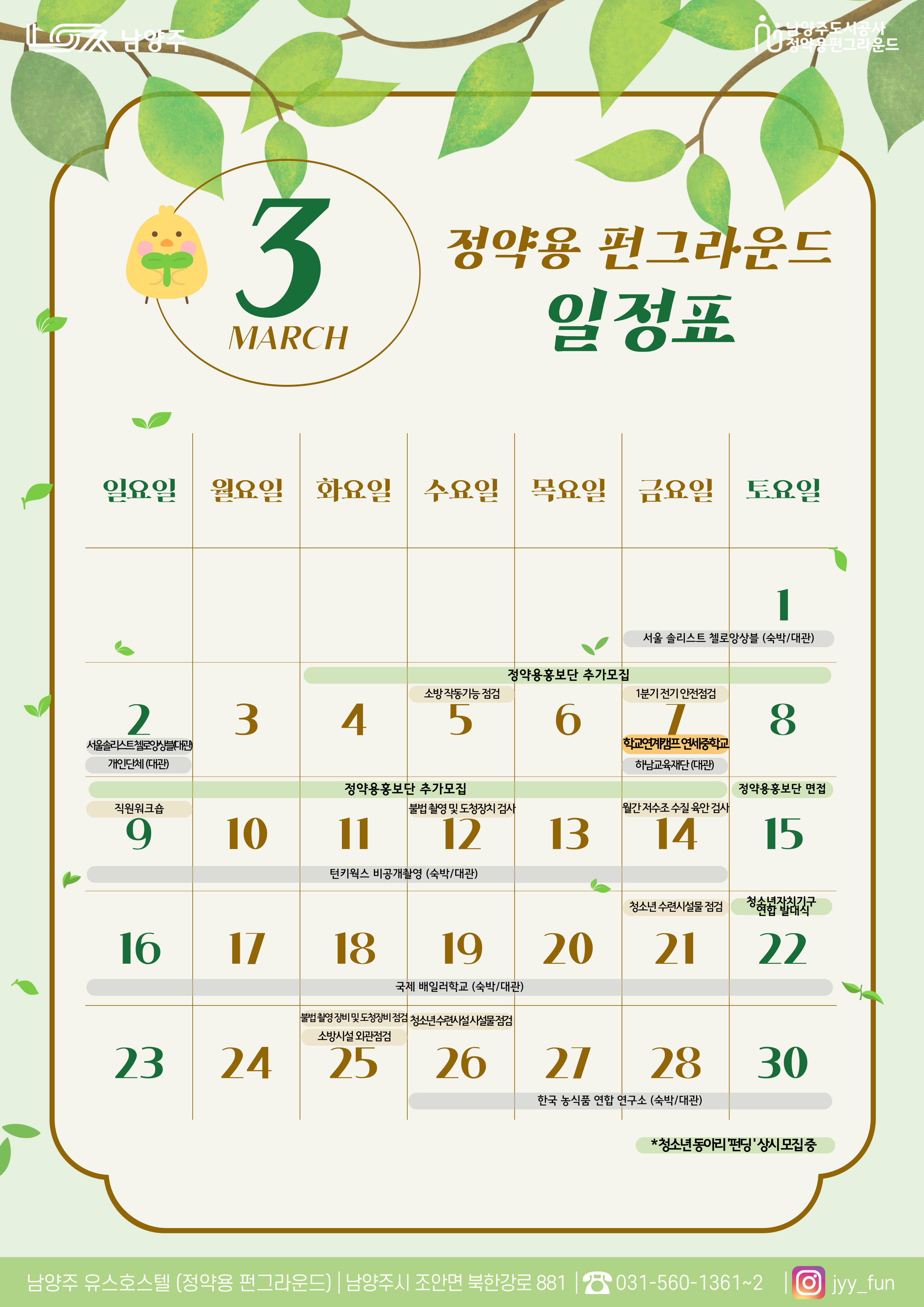 정약용 [공지] 정약용 펀그라운드 3월 일정 작성자 펀그라운드정약용 등록일자 2025년 2월 28일 11시 44분 15초 조회 340 웹포스터 월간 일정 안내 3월.jpg [ Size : 1.17MB, Down : 152 ] 미리보기 다운로드 목록보기