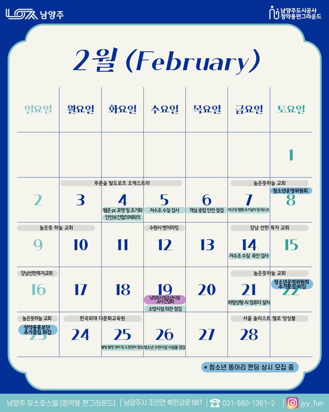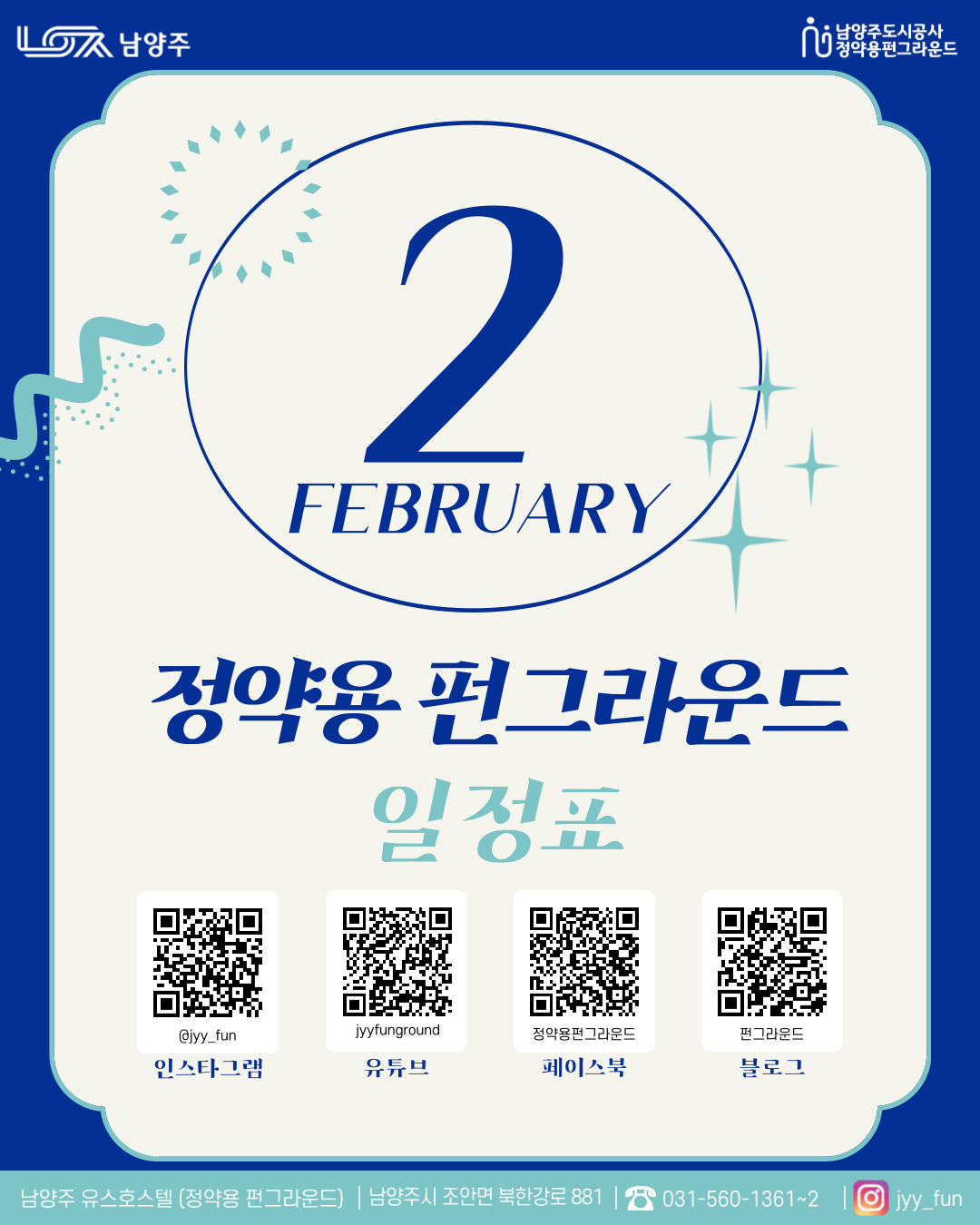정약용 [공지] 정약용 펀그라운드 2월 일정 작성자 펀그라운드정약용 등록일자 2025년 2월 4일 17시 36분 33초 조회 344 카드_-월간-일정-안내-001.jpg [ Size : 251.65KB, Down : 214 ] 미리보기 다운로드 카드_-월간-일정-안내-002.jpg [ Size : 277.05KB, Down : 193 ] 미리보기 다운로드 목록보기