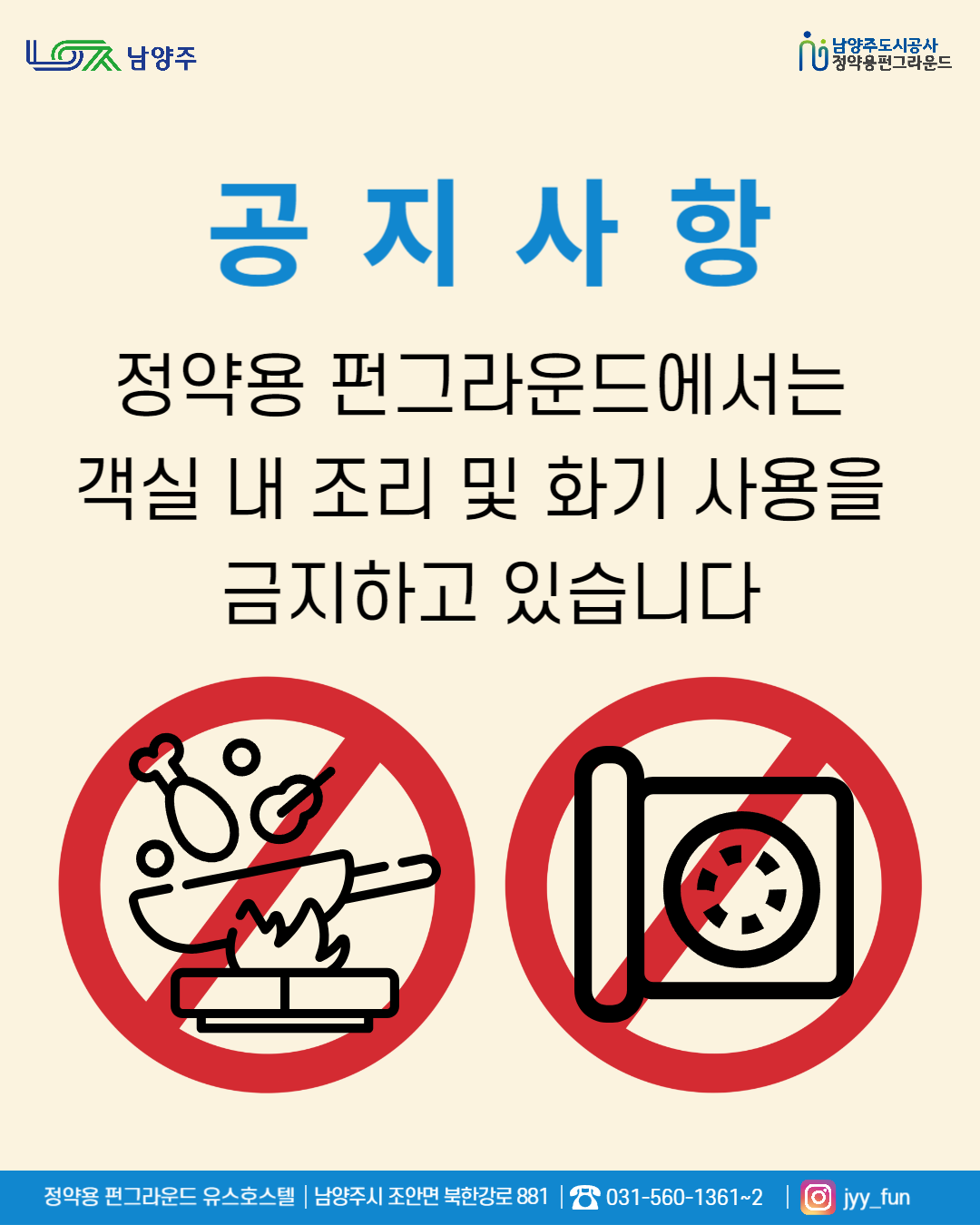 정약용 [공지] 객실 내 조리 및 화기 사용 금지 안내 작성자 펀그라운드정약용 등록일자 2023년 11월 15일 17시 39분 45초 조회 484 최근 일산화탄소 중독으로 숨지는 사고가 잇따라 발생하고 있습니다일산화 탄소는 숯이나 여러 연료가 불완전 연소할 때 발생하며 색깔도, 냄새도 없어 침묵의 살인자라고 불립니다정약용 펀그라운드에서는 객실 내 조리 및 화기사용을금지하고 있으니 이용에 참고해주시기 바랍니다 카드뉴스(세로비율)-001 (1).png [ Size : 210.45KB, Down : 242 ] 미리보기 다운로드 목록보기