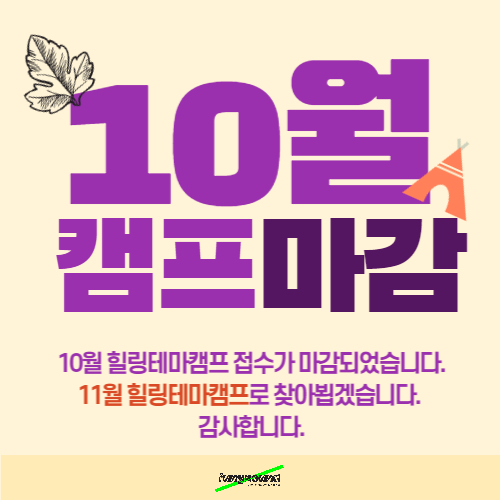 정약용 [마감] 10월 힐링테마캠프 북한강로 881 마감 안내 작성자 펀그라운드정약용 등록일자 2022년 10월 28일 18시 24분 48초 조회 536 힐링테마캠프 팝업.jpg [ Size : 116.32KB, Down : 258 ] 미리보기 다운로드 목록보기