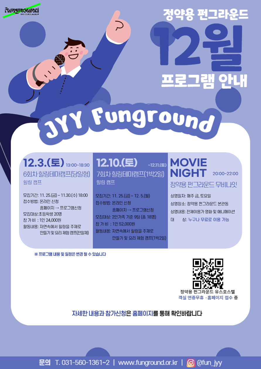 정약용 2022년 12월 정약용 펀그라운드 프로그램 안내 작성자 펀그라운드정약용 등록일자 2022년 12월 2일 14시 55분 10초 조회 534 12월 정펀 프로그램 안내.jpg [ Size : 512.92KB, Down : 367 ] 미리보기 다운로드 목록보기
