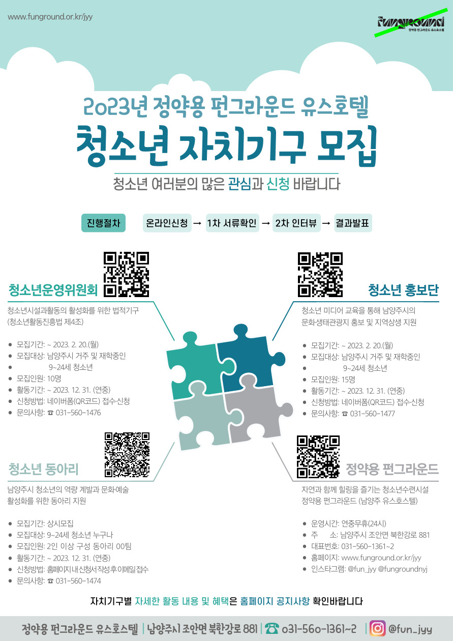 정약용 [모집] 2023년 정약용 펀그라운드 청소년 자치기구 모집 안내 작성자 펀그라운드정약용 등록일자 2023년 1월 6일 10시 30분 44초 조회 864 2023년-청소년자치기구-모집-포스터-001.jpg [ Size : 242.55KB, Down : 822 ] 미리보기 다운로드 목록보기