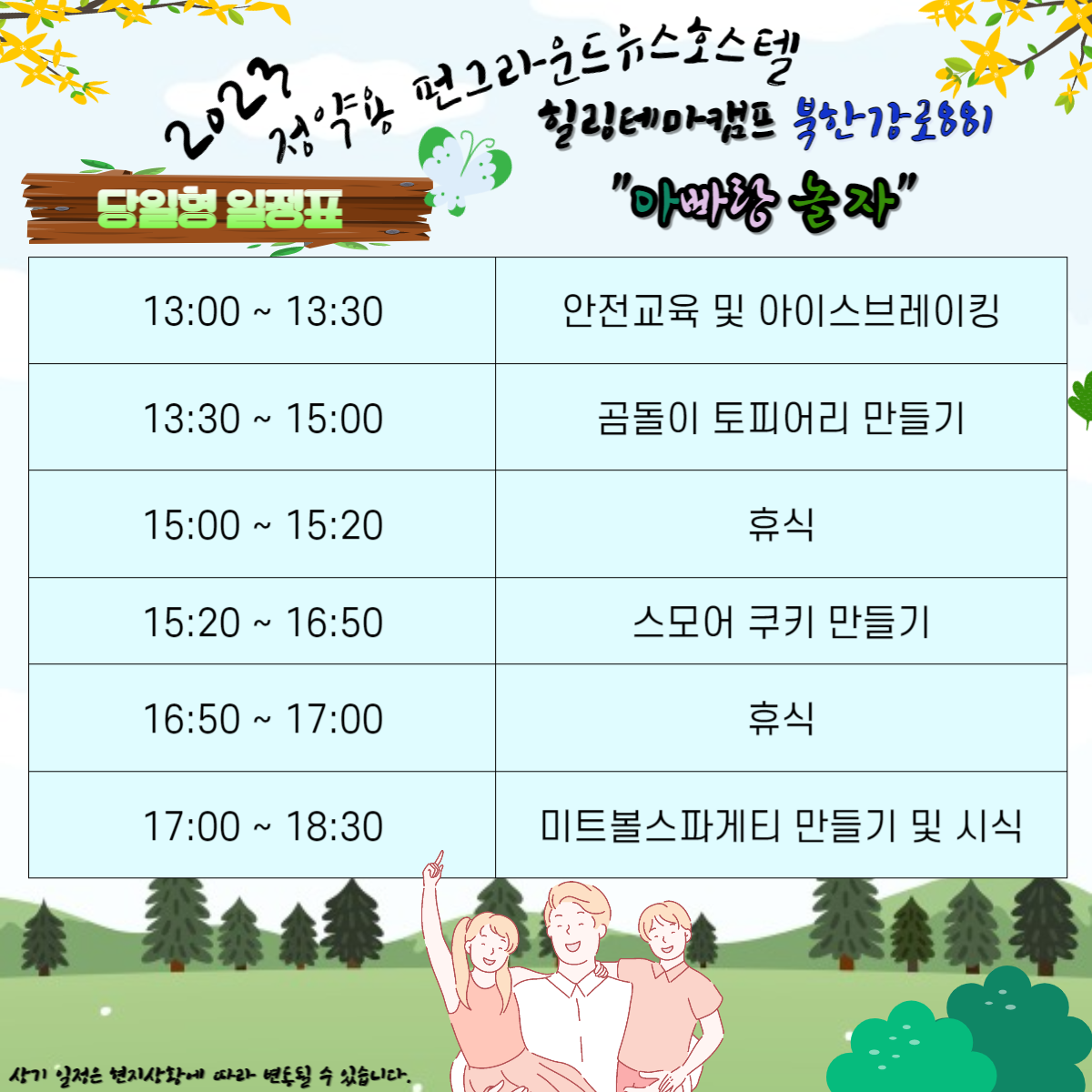 | 프로그램명 | 힐링테마캠프 북한강로 881 |