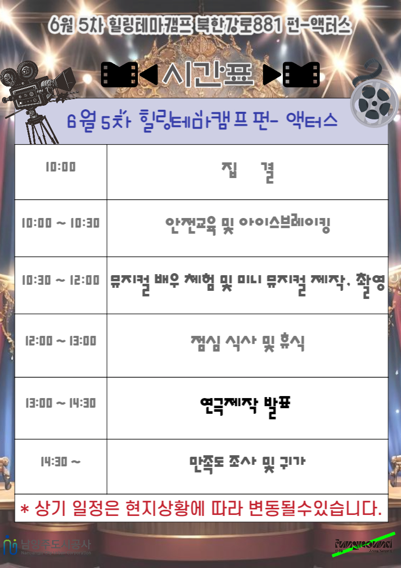 | 프로그램명 | 2024년 제5차(6월) 정약용 펀그라운드 힐링테마캠프 북한강로881 펀-액터스 |