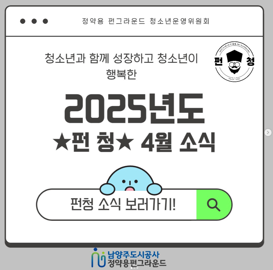 청소년운영위원회 2025년 4월 청소년운영위원회 정기활동 작성자 펀그라운드정약용 등록일자 2025년 8월 17일 16시 48분 36초 조회 62 4월활동.png [ Size : 252.58KB, Down : 22 ] 미리보기 다운로드 4월활동 2.png [ Size : 1.13MB, Down : 26 ] 미리보기 다운로드 4월활동 3.png [ Size : 1.05MB, Down : 23 ] 미리보기 다운로드 목록보기