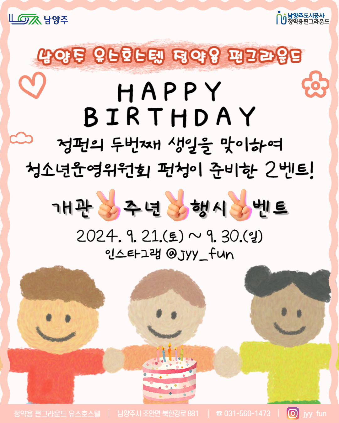 청소년운영위원회 2024년 청소년운영위원회 펀청 개관 2주년 기념 이벤트 안내 작성자 펀그라운드정약용 등록일자 2024년 10월 4일 10시 34분 15초 조회 135 003 (4).jpg [ Size : 845.18KB, Down : 67 ] 미리보기 다운로드 목록보기