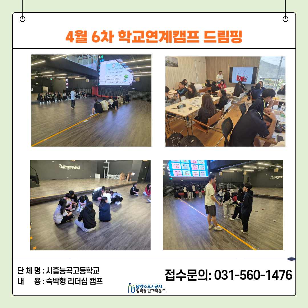 학교연계캠프 드림핑 정약용 펀그라운드 학교연계캠프 드림핑(능곡고등학교) 작성자 펀그라운드정약용 등록일자 2024년 10월 5일 11시 3분 17초 조회 122 6차 능곡고.png [ Size : 1.11MB, Down : 59 ] 미리보기 다운로드 목록보기