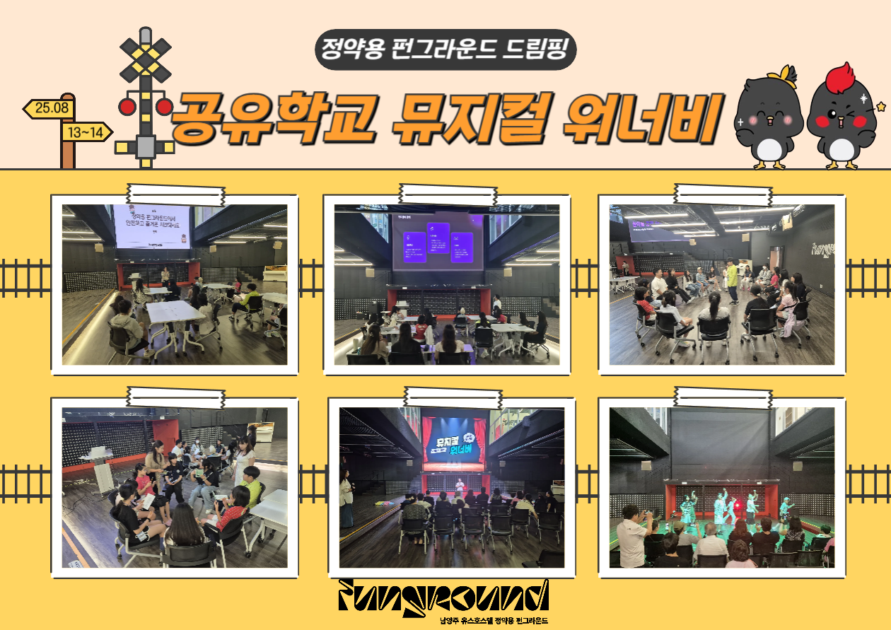학교연계캠프 드림핑 2025-08-13~14 남양주 공유학교 뮤지컬 워너비 2기 작성자 펀그라운드정약용 등록일자 2025년 8월 17일 15시 27분 48초 조회 43 뮤지컬 2기.png [ Size : 1.06MB, Down : 17 ] 미리보기 다운로드 목록보기