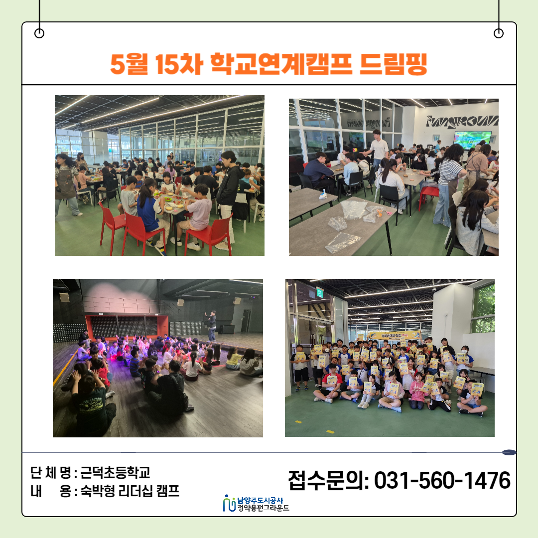 학교연계캠프 드림핑 정약용 펀그라운드 학교연계캠프 드림핑(근덕초등학교) 작성자 펀그라운드정약용 등록일자 2024년 10월 5일 11시 7분 33초 조회 101 15차 근덕초.png [ Size : 1.19MB, Down : 59 ] 미리보기 다운로드 목록보기