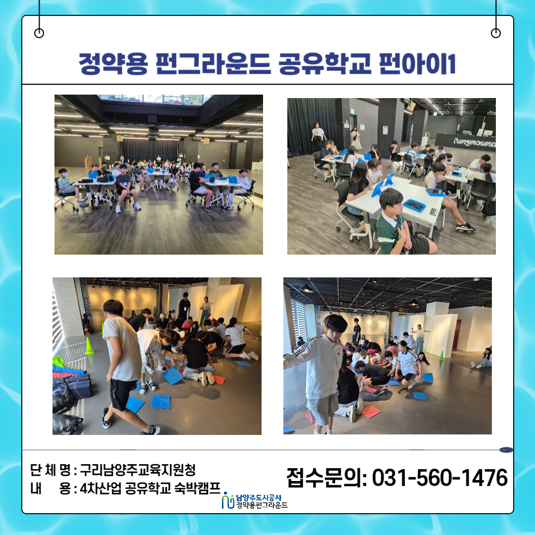 학교연계캠프 드림핑 정약용 펀그라운드 학교연계캠프 드림핑(공유학교 1기) 작성자 펀그라운드정약용 등록일자 2024년 10월 5일 11시 14분 29초 조회 167 공유학교 펀아이1기.png [ Size : 1.3MB, Down : 71 ] 미리보기 다운로드 목록보기