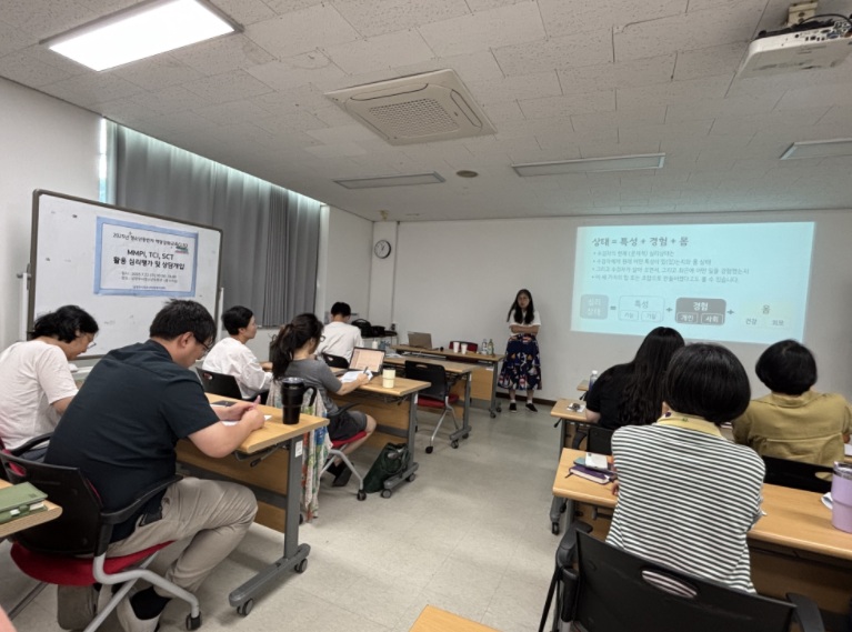 청소년동반자 역량강화교육이 진행되었습니다.청소년동반자 역량강화교육은 매우 뜻깊은 시간이었습니다. 최효주임상심리센터의 최효주 센터장님께서 진행한 이번 강의는 3가지 심리검사를 활용하여 청소년의 마음 상태를 보다 면밀히 파악하고, 그 결과를 바탕으로 효과적인 상담개입을 이루는 방법에 초점을 맞추었습니다. 검사에 대한 해석에 앞서 필수적으로 분류되어야 할 핵심 요인들에 대한 이론적 배경을 배우며, 단순한 도구 사용에 그치지 않고 청소년의 정서와 심리를 깊이 있게 이해하는 안목을 키우는 배움의 시간이었습니다.