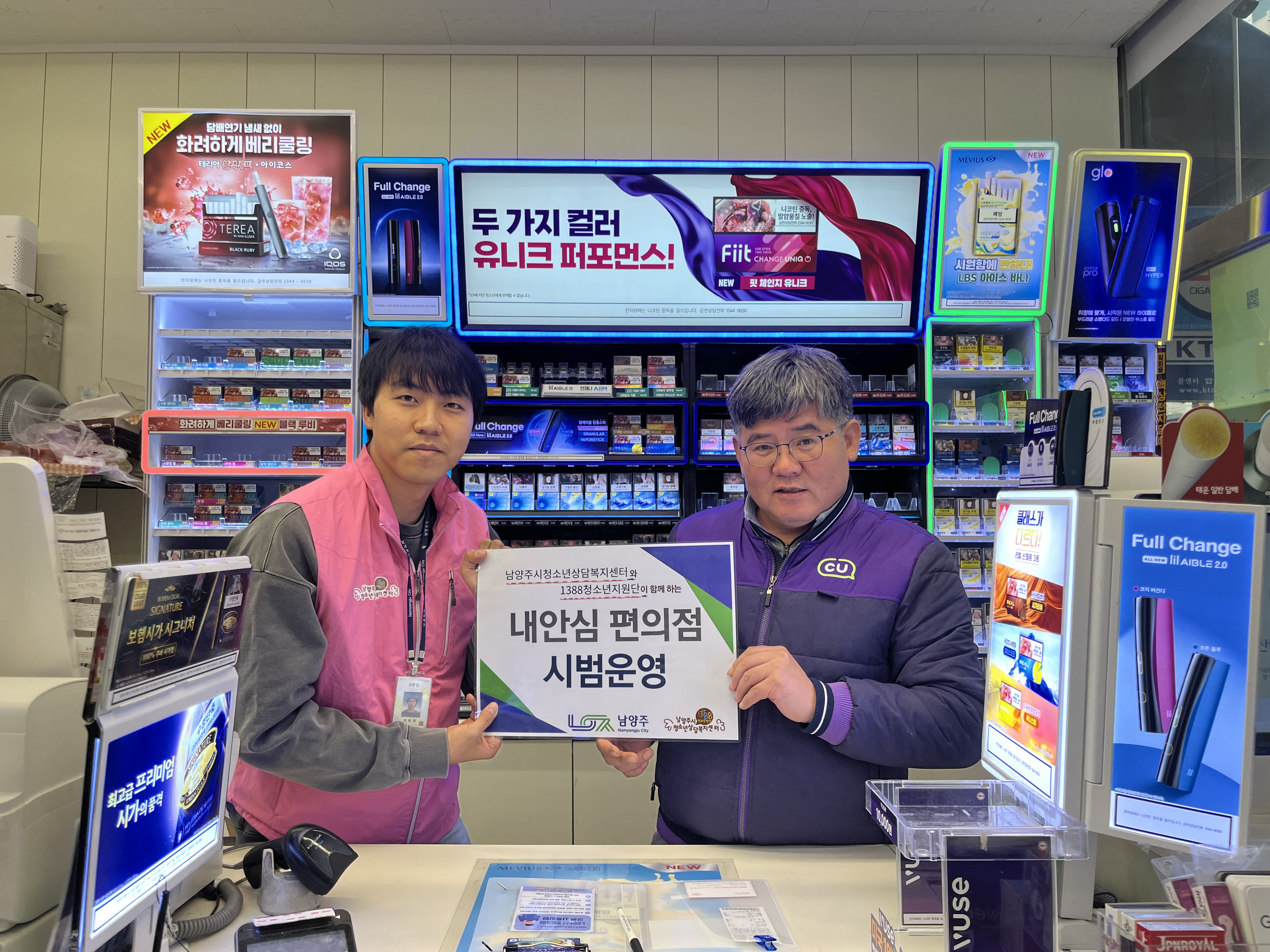 2024년 청소년지원단 ‘내안심편의점’ 시범운영 작성자 청소년상담복지센터 등록일자 2024년 11월 28일 15시 40분 57초 조회 142 2024년 청소년지원단 ‘내안심편의점’ 시범운영 일시 : 2024년 11월 ~ 12월장소 : CU 다남프라자점, 이마트24 마석우리점 복지 사각지대에 있는 위기청소년 발굴 및 지원을 위하여 청소년 안정망 지원체계인 ‘내안심 편의점'을 구성하였으며 올해 편의점 2곳에서 시범운영합니다. photo_0.JPG [ Size : 3.17MB, Down : 75 ] 미리보기 다운로드 photo_1.JPG [ Size : 3.55MB, Down : 73 ] 미리보기 다운로드 목록보기