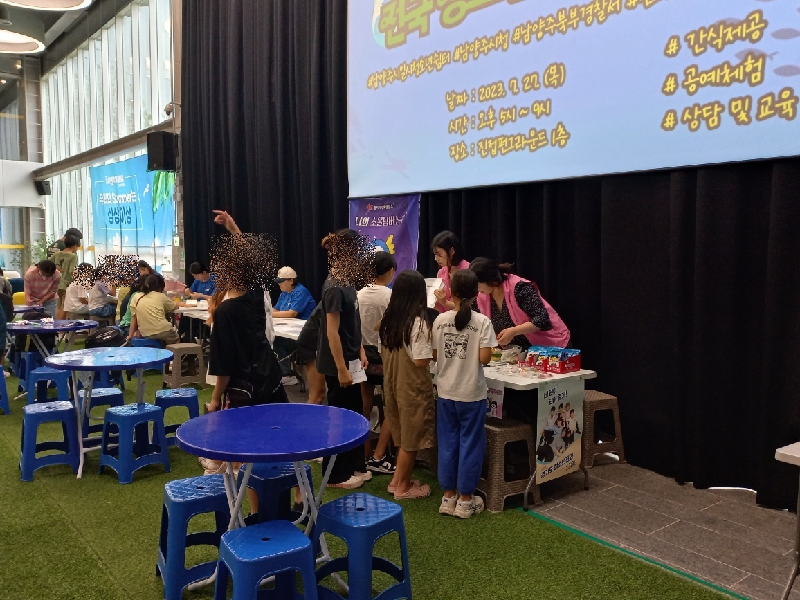 2023년 일시청소년쉼터 주관 연합아웃리치에 청소년상담복지센터와 학교 밖 지원센터 꿈드림이 참여하여 관내 청소년들을 만나고 왔습니다! 이번 부스에서는 청소년상담복지센터관련 퀴즈를 진행하고 홍보물품을 배포하였습니다. 주변 일대를 다니며 청소년들에게도 직접 만나고 왔습니다~! 남양주시일시청소년쉼터, 남양주북부경찰서, 청소년상담복지센터, 학교 밖 청소년지원센터 등 함께 하였습니다^^