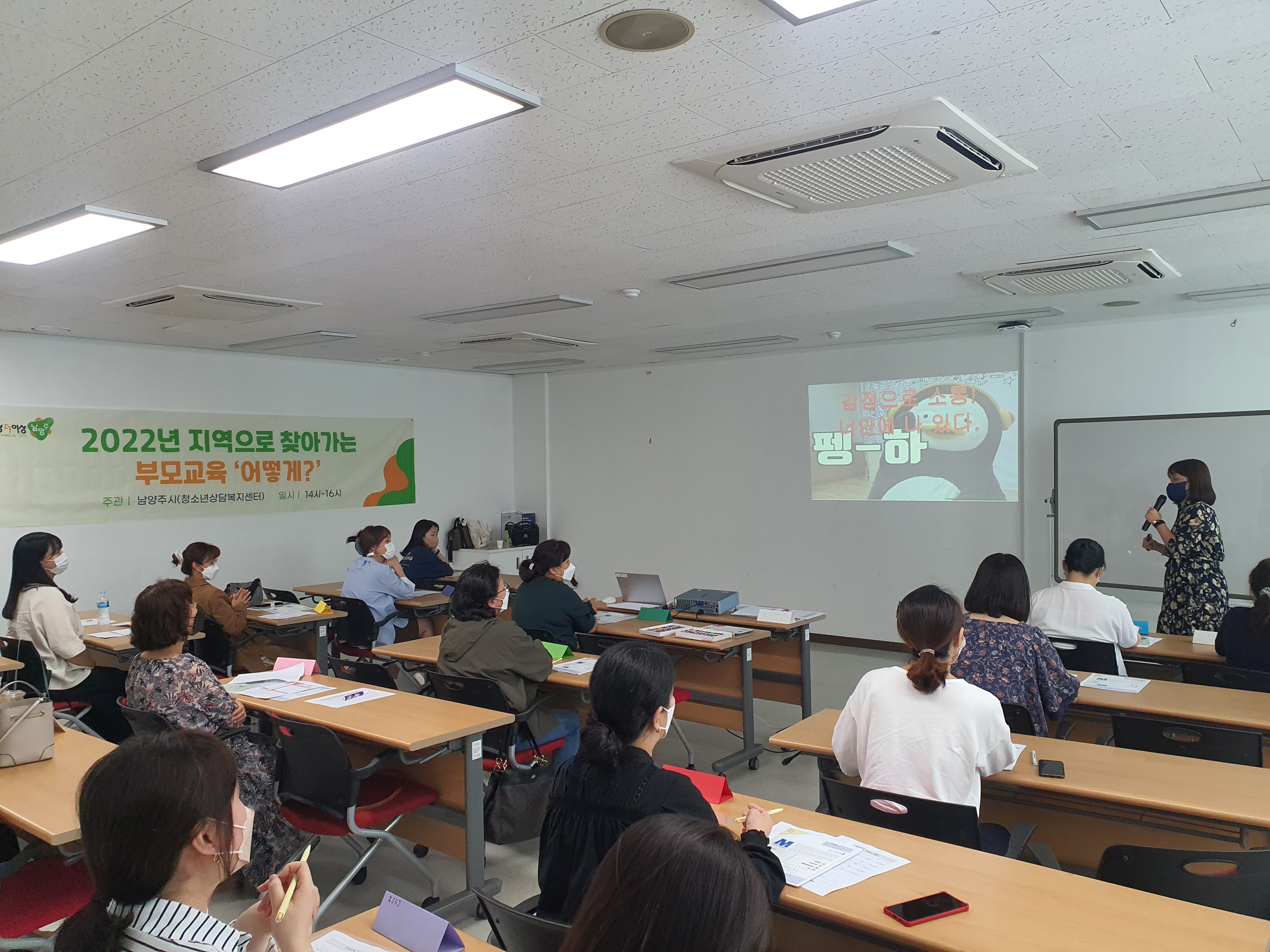 2022년 지역으로 찾아가는 부모교육 운영(9월 20일) 작성자 청소년상담복지센터 등록일자 2022년 9월 21일 11시 51분 14초 조회 217 9월 20일 남양주시청소년수련관 누리실에서 '2022년 지역으로 찾아가는 부모교육'이 진행되었습니다.최정은 강사와 함께 'MBTI를 통한 자녀이해와 소통, 어떻게?'를 주제로 2시간동안 강의를 진행하였습니다. 1663725695227-3.jpg [ Size : 3.48MB, Down : 233 ] 미리보기 다운로드 목록보기