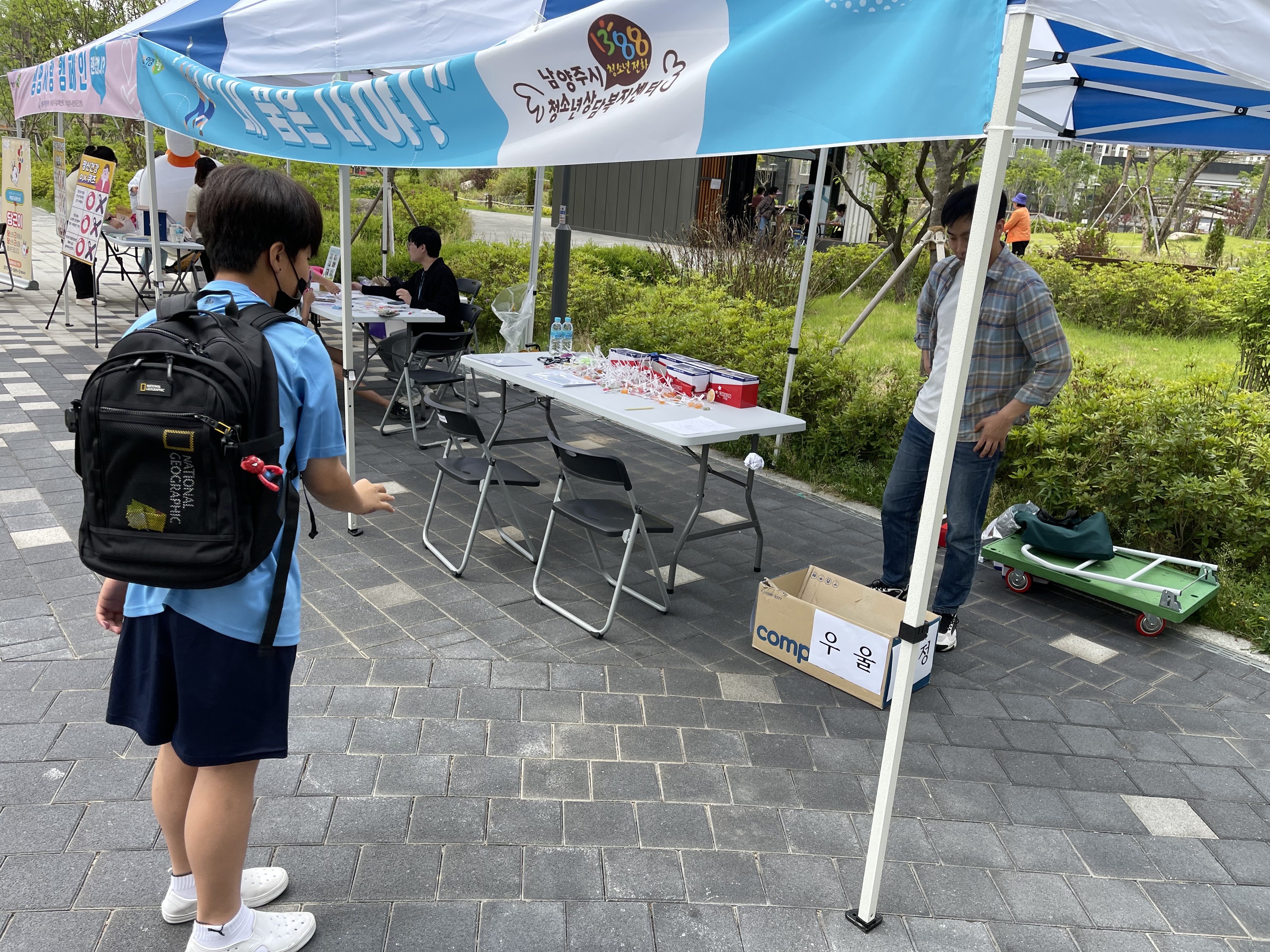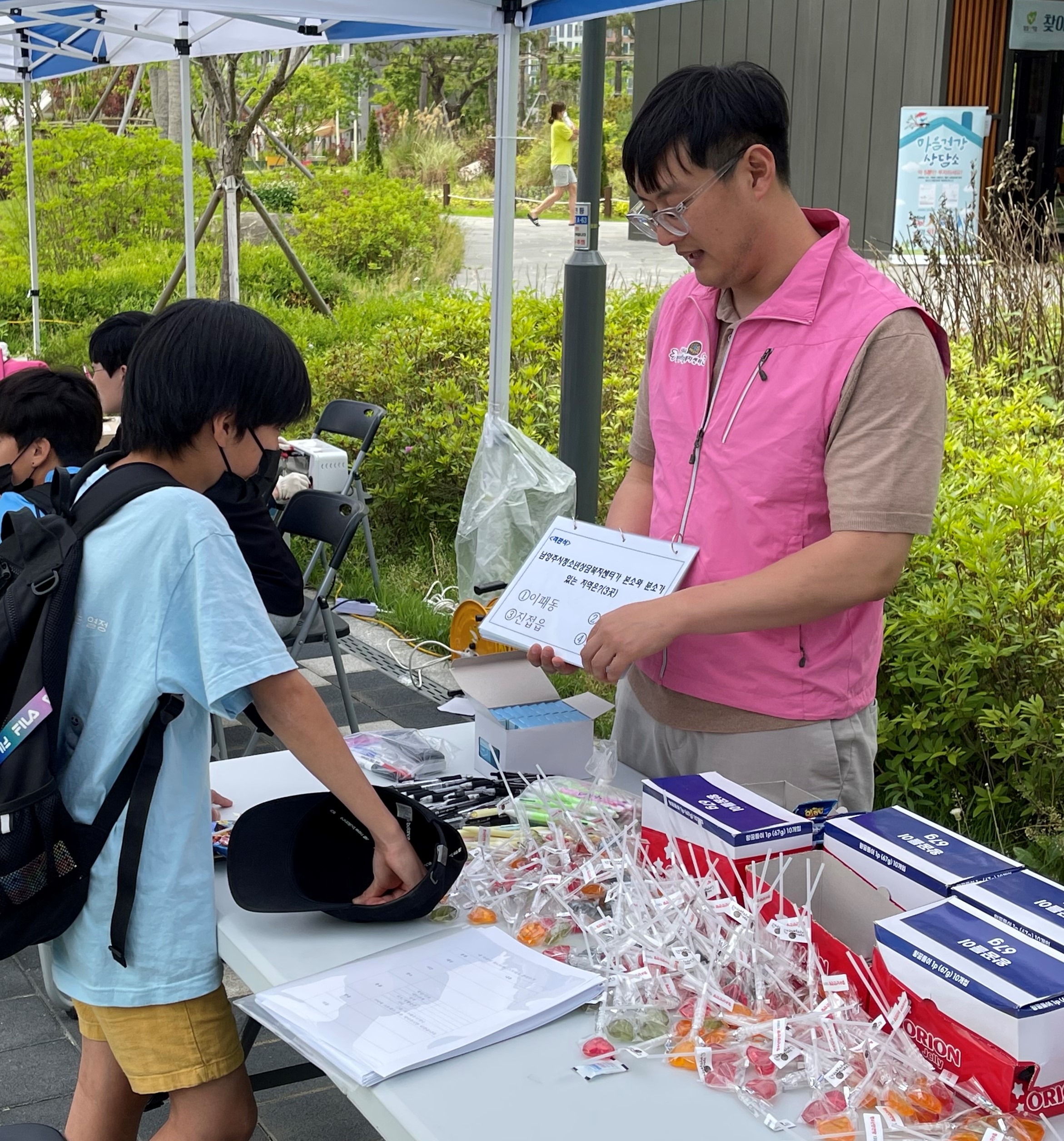 2023년 정신건강복지센터 주관 연합 아웃리치 작성자 청소년상담복지센터 등록일자 2023년 5월 30일 20시 9분 50초 조회 211 2023년 정신건강복지센터 주관 연합 아웃리치일시 : 2023년 5월 24일(수)장소 : 다산지금 A5 아파트 단지 내2023년 정신건강복지센터 주관 연합 아웃리치 부스활동을 진행하였습니다. 스트레스를 상황에 대한 분리수거 활동과 1388 퀴즈를 진행하고 부스활동에 참여한 청소년에게 부스물품도 나눠주였습니다 ^^ 1685431652852.jpg [ Size : 3.96MB, Down : 111 ] 미리보기 다운로드 1685431653901.jpg [ Size : 2.74MB, Down : 99 ] 미리보기 다운로드 1685431653777.jpg [ Size : 1.39MB, Down : 106 ] 미리보기 다운로드 1685431654481.jpg [ Size : 4MB, Down : 116 ] 미리보기 다운로드 목록보기