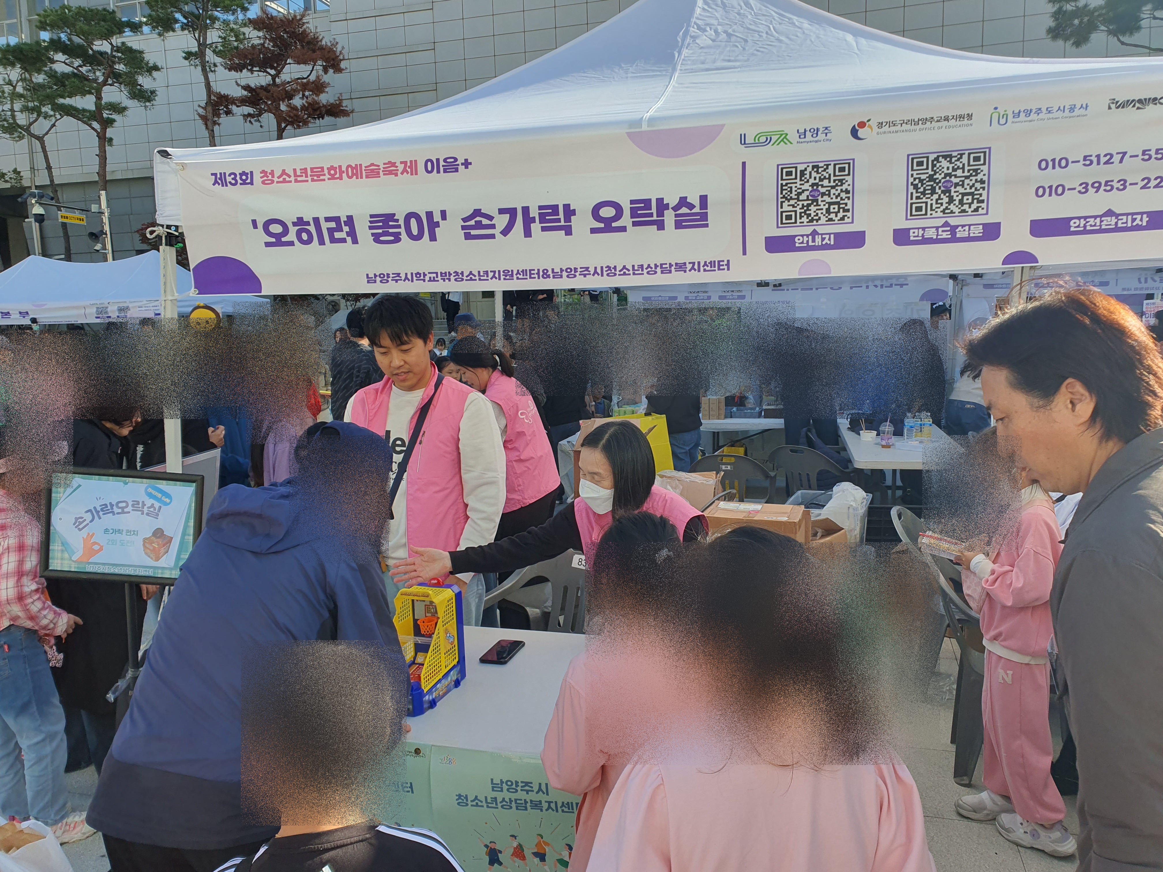 특히, 남양주시청소년상담복지센터와 남양주시학교밖청소년지원센터는 손가락 오락실 부스운영으로 핑거 농구게임과 핑거 펀치로 청소년과 아동 및 관내 주민들의 흥미를 유발하였고, 센터 안내와 1388 홍보도 진행하였습니다. 또한 부스운영에 참여한 청소년과 아동에게 간식키트 상품도 제공하는 시간을 보냈습니다 ㅎ