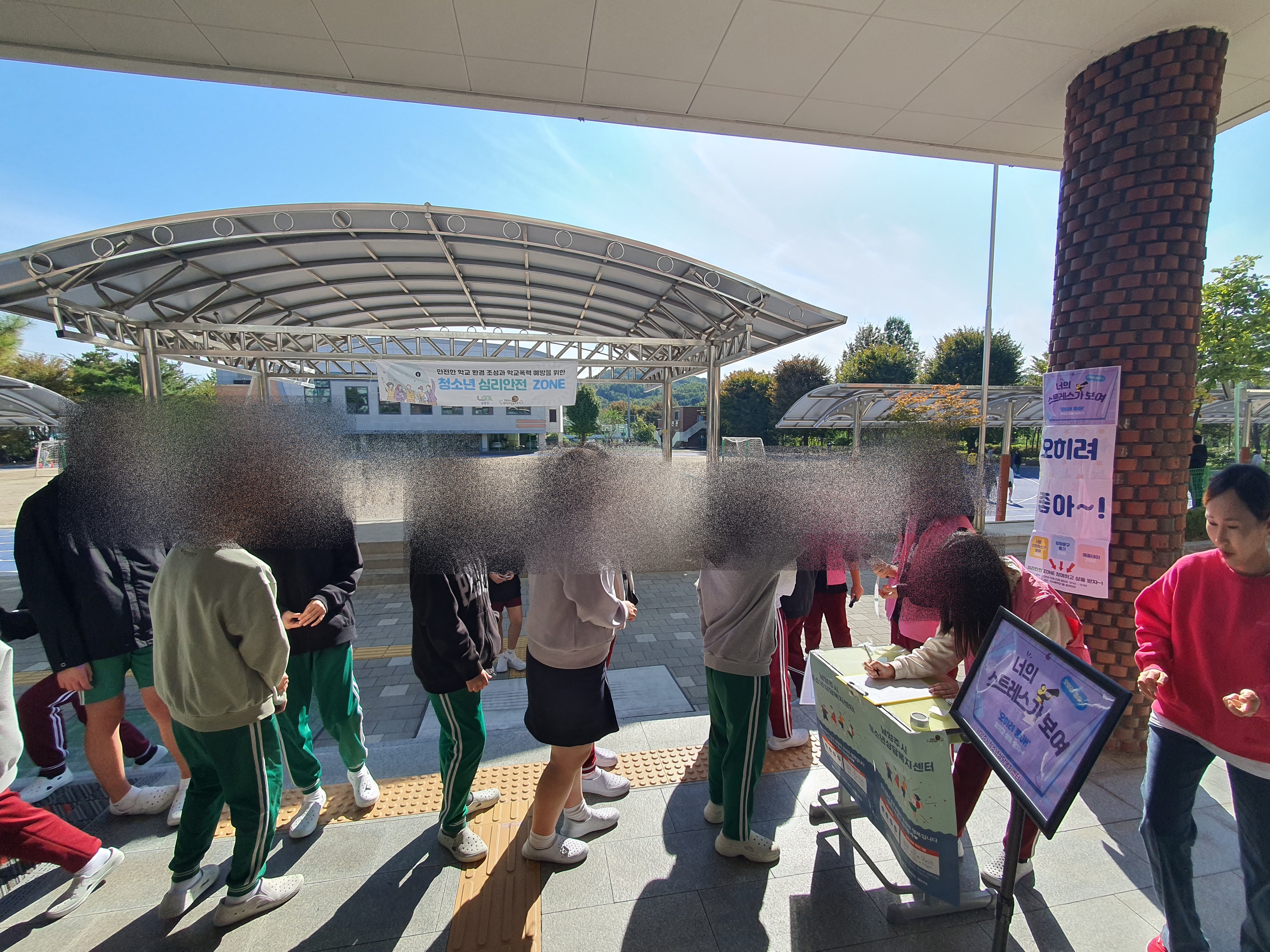 남양주시청소년상담복지센터 10월 2차 심리안전존 행사(진건중) 작성자 청소년상담복지센터 등록일자 2024년 10월 29일 14시 52분 49초 조회 121 남양주시청소년상담복지센터 10월 2차 심리안전존 행사일시 : 2024년 10월 25일(금) 10:00~15:30장소 : 진건중학교진건중학교에서 학생부 친구들과 함께 심리안전존 행사를 즐겼습니다~^^점심시간에 힐링 문구 뽑기와 너의 스트레스가 보여, 애플데이 부스참여를 통해 다양한 상품도 받고~ 심러적 회복을 경험했던 행사였습니다. 2024년 심리안전존 진건중 1.jpg [ Size : 8.72MB, Down : 64 ] 미리보기 다운로드 2024년 심리안전존 진건중 2.jpg [ Size : 6.83MB, Down : 65 ] 미리보기 다운로드 2024년 심리안전존 진건중 3.jpg [ Size : 7.98MB, Down : 64 ] 미리보기 다운로드 2024년 심리안전존 진건중 4.jpg [ Size : 5.13MB, Down : 67 ] 미리보기 다운로드 목록보기