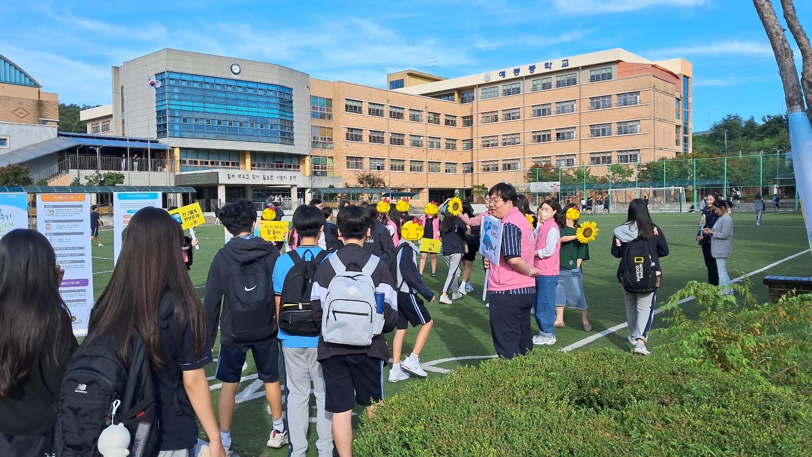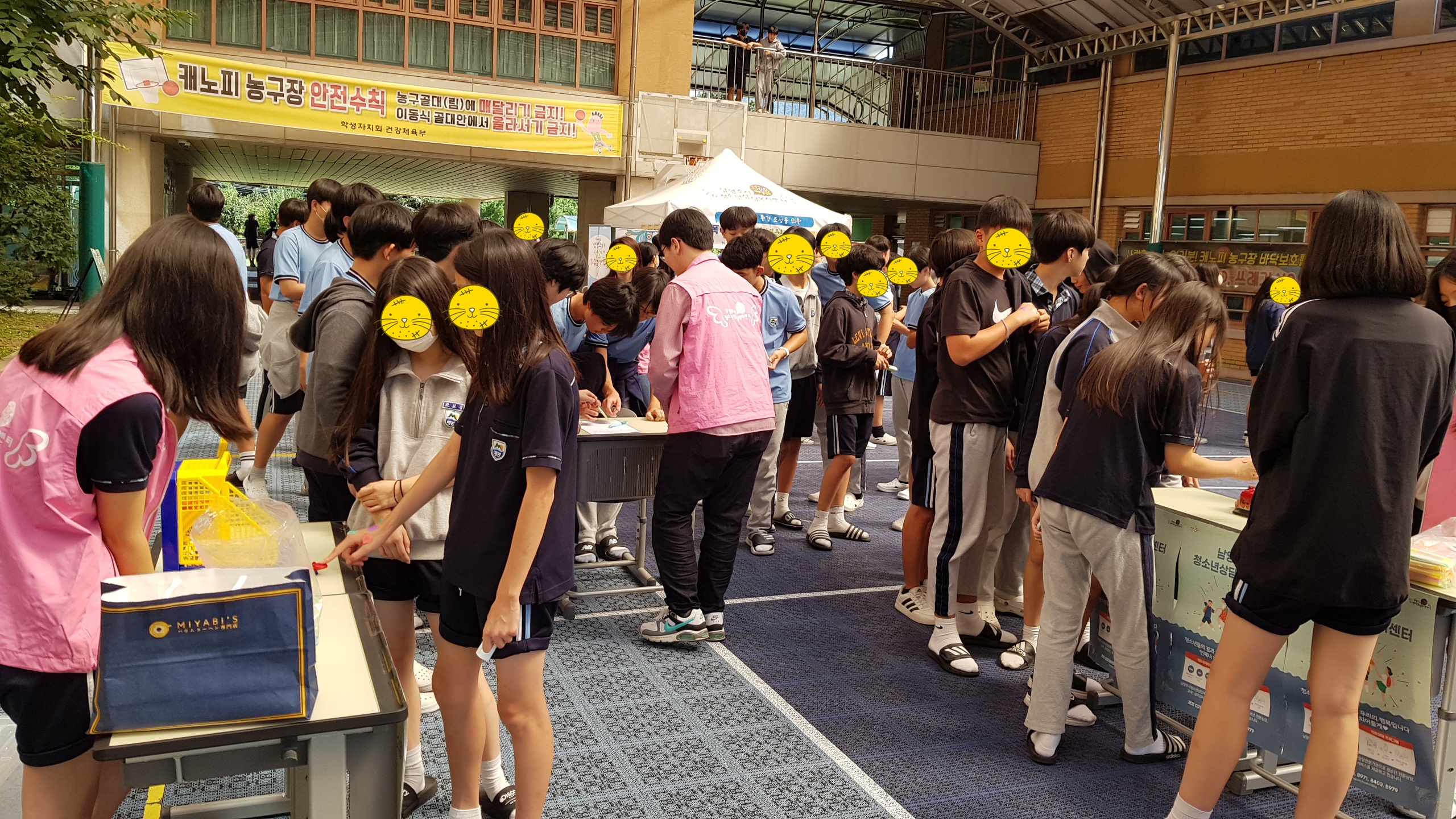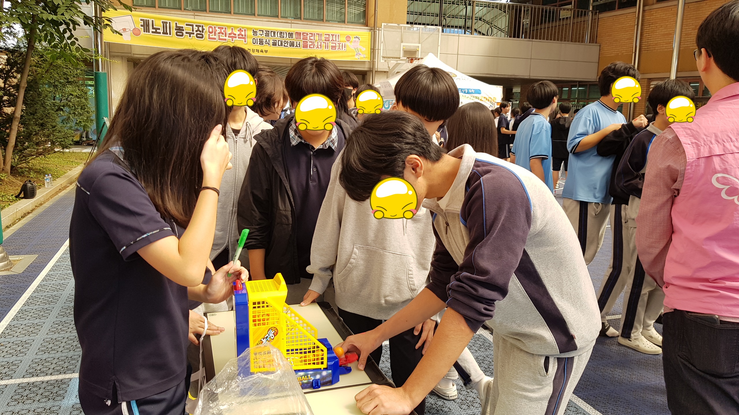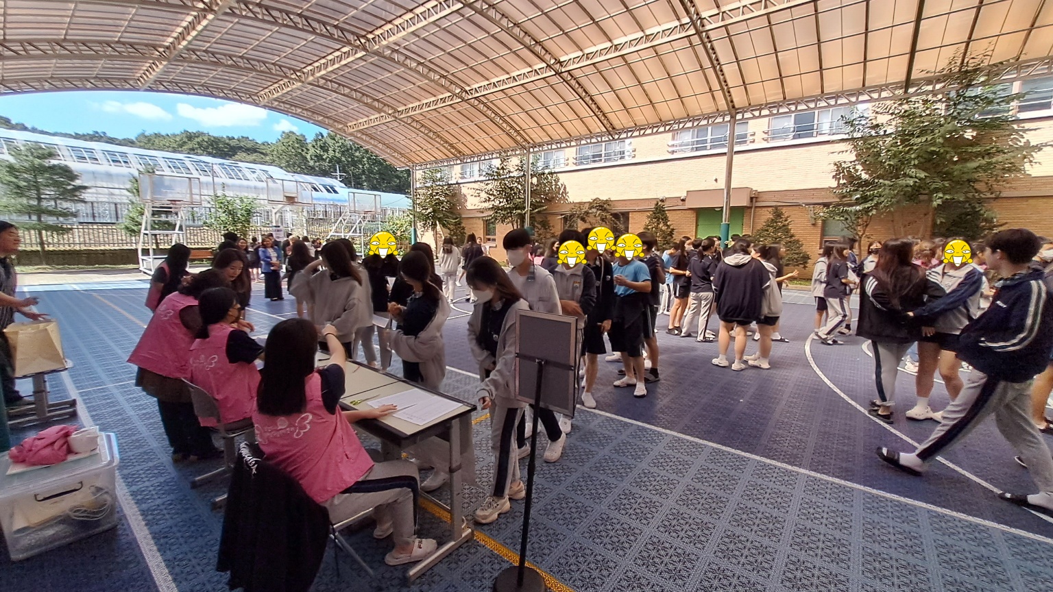 등교맞이 인사, 학교폭력예방 캠페인의 등굣길 행사가 이루어졌으며 점심시간 농구코트에서는 스트레스 구기고버리고, 삶의 데시벨을 높이자, 드루와 손가락 오락실 등 3가지 부스를 참여한 학생들에게는 몸과 마음을 챙길 수 있는 힐링 간식꾸러미를 나누어주는 활동을 진행하였습니다.
