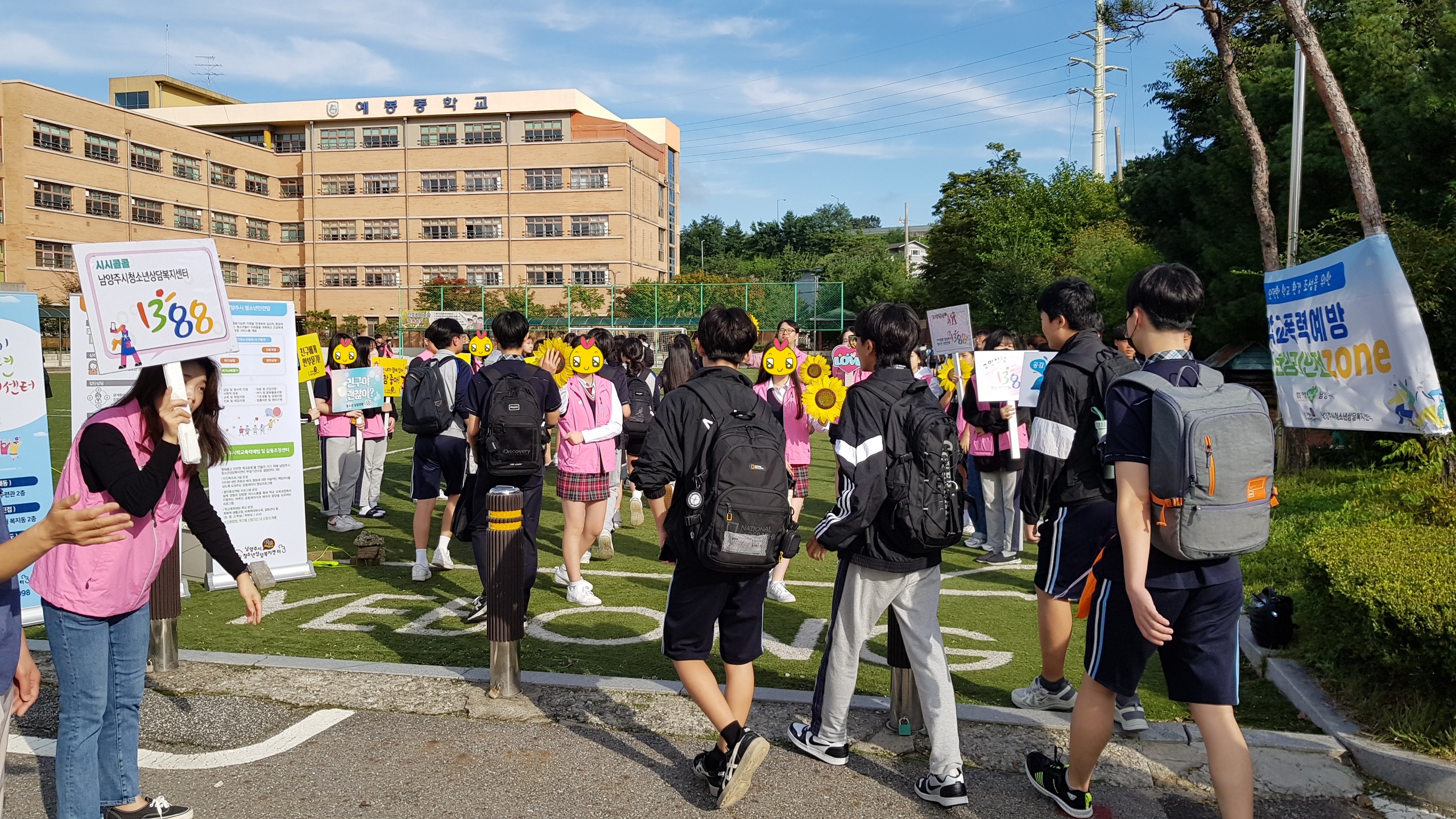 예봉중학교에서 청소년 학교폭력 예방과 관련하여 등교맞이 행사 및 점심시간 부스운영 등 청소년심리안전ZONE 활동을 진행하였습니다.