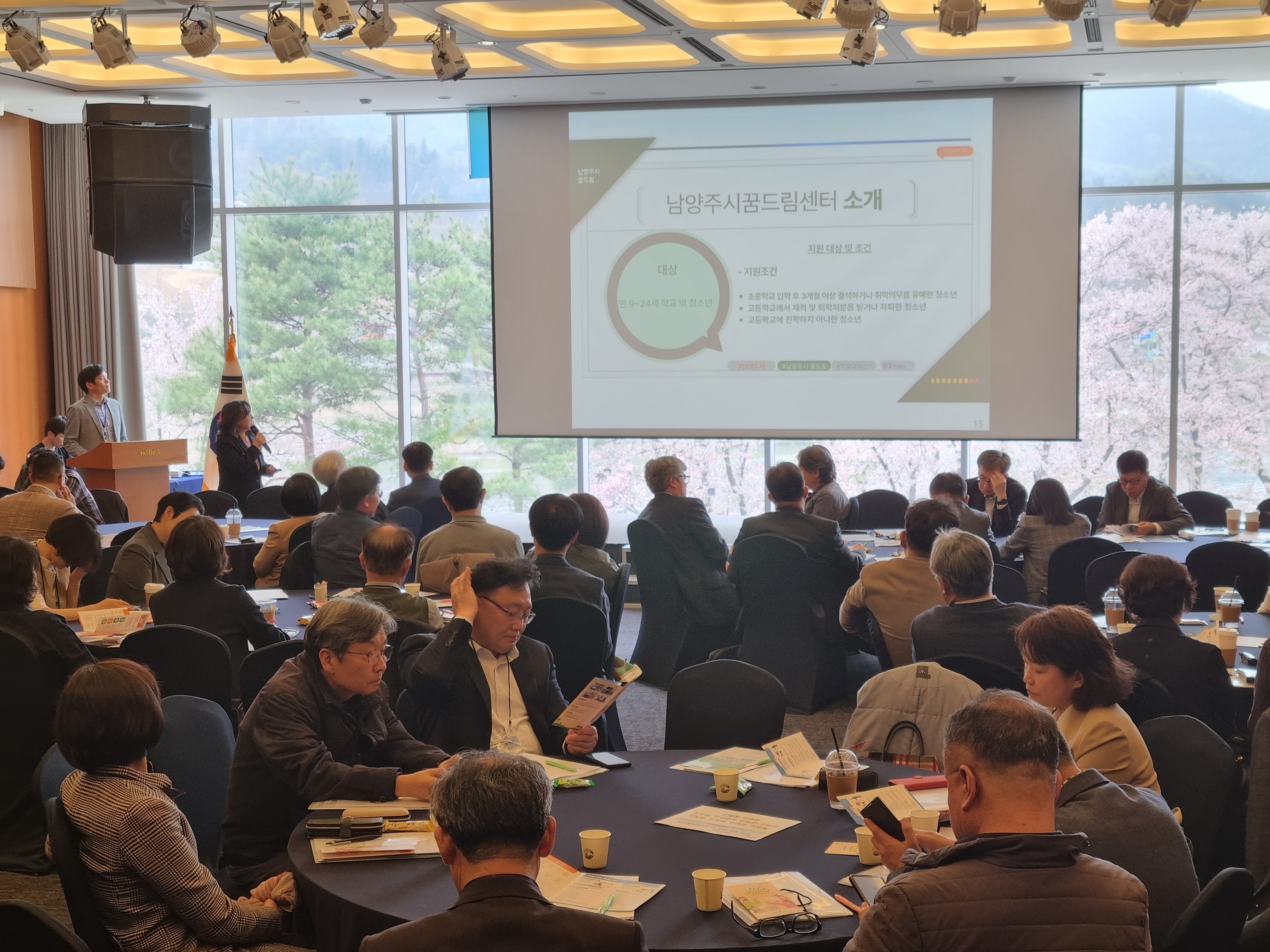 2024년 학교지원단을 4월 8일(초등 교장단), 4월 11일(중,고등 교장단) 양일간 청평 마이다스 리조트에서 진행하였습니다. 청소년상담복지센터 및 학교밖청소년 지원센터 홍보 및 사업안내를 하였습니다. 교장선생님들이 많은 관심가져 주셨기에 우리 남양주에서 학교의 위기청소년 발굴 및 연계는 든든하리라 생각합니다.