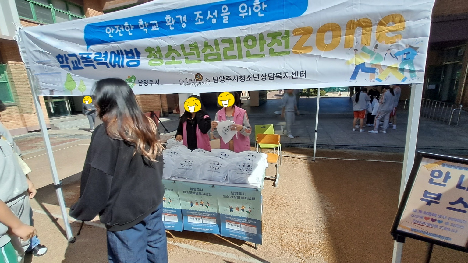 진접중학교 청소년심리안전ZONE 활동으로 등굣길 학교폭력예방 캠페인과 학생들의 등교 맞이 행사를 진행하였습니다. 또한 점심시간에는 스트레스를 날리고 즐거움을 채우는 부스활동을 운영하였으며 진접중학교 학생들의 적극적인 참여가 있었습니다.