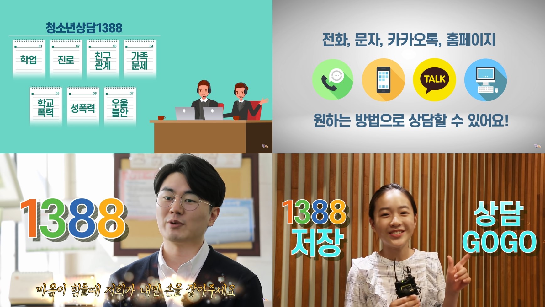 털어놓는 것만으로 한결 나아질 때가 있어! 1388 청소년상담 (유튜브 영상 링크)