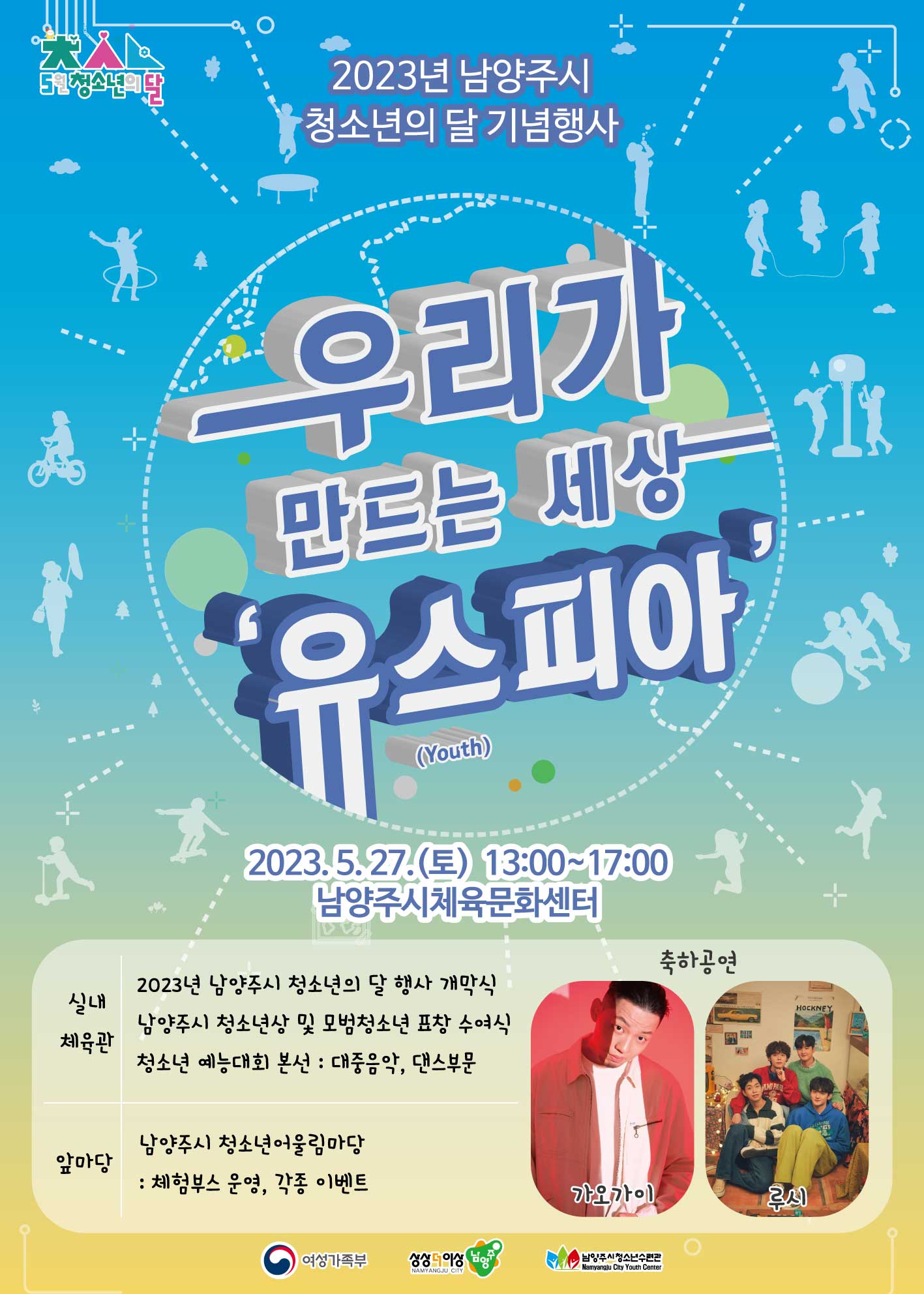 청소년수련관 2023년 남양주시 「청소년의 달」 기념행사 안내 작성자 청소년수련관 등록일자 2023년 5월 10일 10시 1분 0초 조회 514 청소년의 달 포스터.jpg [ Size : 214.15KB, Down : 424 ] 미리보기 다운로드 5월 어울림마당 부스운영표.png [ Size : 608.95KB, Down : 300 ] 미리보기 다운로드 목록보기